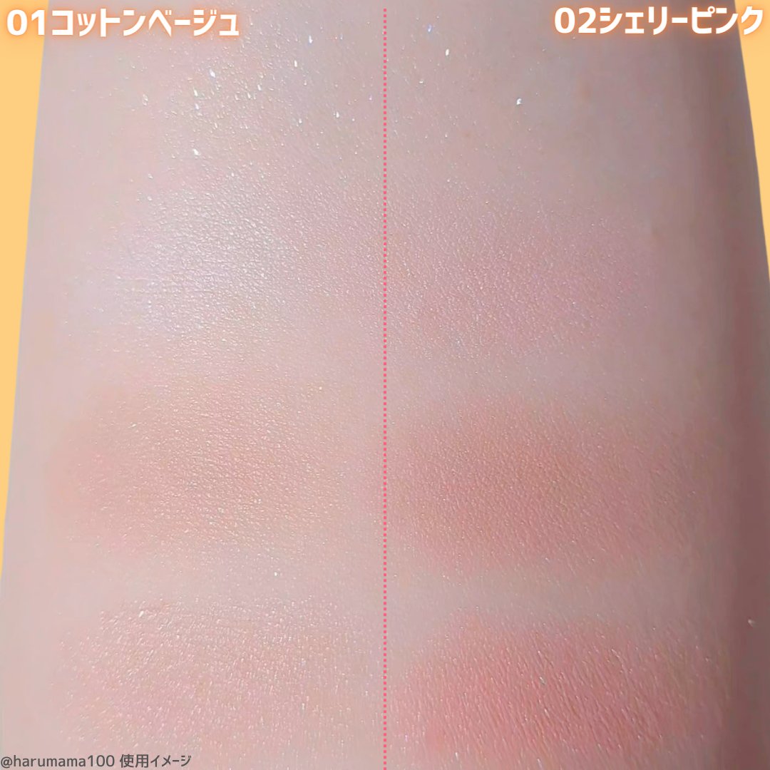 - ≪01 コットンベージュ≫ 〈A〉ジメチコン、タルク、トリ(カプリル酸/カプリン酸)グリセリル、(ジメチコン/ビニルジメチコン)クロスポリマー、カルナウバロウ、ラウロイルリシン、トコフェロール、スクワラン、ホホバ種子油、ホウケイ酸(Ca/Al)、マイカ、酸化チタン、酸化鉄 〈BCD〉タルク、リンゴ酸ジイソステアリル、ジメチコン、ジエチルヘキサン酸ネオペンチルグリコール、シリカ、ヘキサ(ヒドロキシステアリン酸/ステアリン酸/ロジン酸)ジペンタエリスリチル、クロルフェネシン、デヒドロ酢酸Na、セスキイソステアリン酸ソルビタン、ミリスチン酸亜鉛、水酸化Al、トコフェロール、スクワラン、ホホバ種子油、マイカ、酸化チタン、酸化鉄、ホウケイ酸(Ca/Al)、グンジョウ、酸化スズ ≪02 シェリーピンク≫ 〈A〉ジメチコン、タルク、(ジメチコン/ビニルジメチコン)クロスポリマー、トリ(カプリル酸/カプリン酸)グリセリル、カルナウバロウ、ラウロイルリシン、シリカ、トコフェロール、スクワラン、ホホバ種子油、ホウケイ酸(Ca/Al)、マイカ、酸化チタン、酸化鉄、酸化スズ、グンジョウ、コンジョウ 〈BCD〉タルク、リンゴ酸ジイソステアリル、ジメチコン、ジエチルヘキサン酸ネオペンチルグリコール、シリカ、ヘキサ(ヒドロキシステアリン酸/ステアリン酸/ロジン酸)ジペンタエリスリチル、クロルフェネシン、デヒドロ酢酸Na、セスキイソステアリン酸ソルビタン、ミリスチン酸亜鉛、水酸化Al、トコフェロール、スクワラン、ホホバ種子油、マイカ、酸化チタン、酸化鉄、ホウケイ酸(Ca/Al)、グンジョウ、赤226 ≪03 ムーンアメジスト≫ 〈A〉ジメチコン、タルク、(ジメチコン/ビニルジメチコン)クロスポリマー、トリ(カプリル酸/カプリン酸)グリセリル、カルナウバロウ、ラウロイルリシン、トコフェロール、スクワラン、ホホバ種子油、ホウケイ酸(Ca/Al)、マイカ、酸化チタン、酸化鉄 〈BCD〉タルク、リンゴ酸ジイソステアリル、ジメチコン、ジエチルヘキサン酸ネオペンチルグリコール、シリカ、ヘキサ(ヒドロキシステアリン酸/ステアリン酸/ロジン酸)ジペンタエリスリチル、クロルフェネシン、デヒドロ酢酸Na、セスキイソステアリン酸ソルビタン、ミリスチン酸亜鉛、水酸化Al、トコフェロール、スクワラン、ホホバ種子油、マイカ、酸化チタン、酸化鉄、ホウケイ酸(Ca/Al)、グンジョウ、赤226、酸化スズ