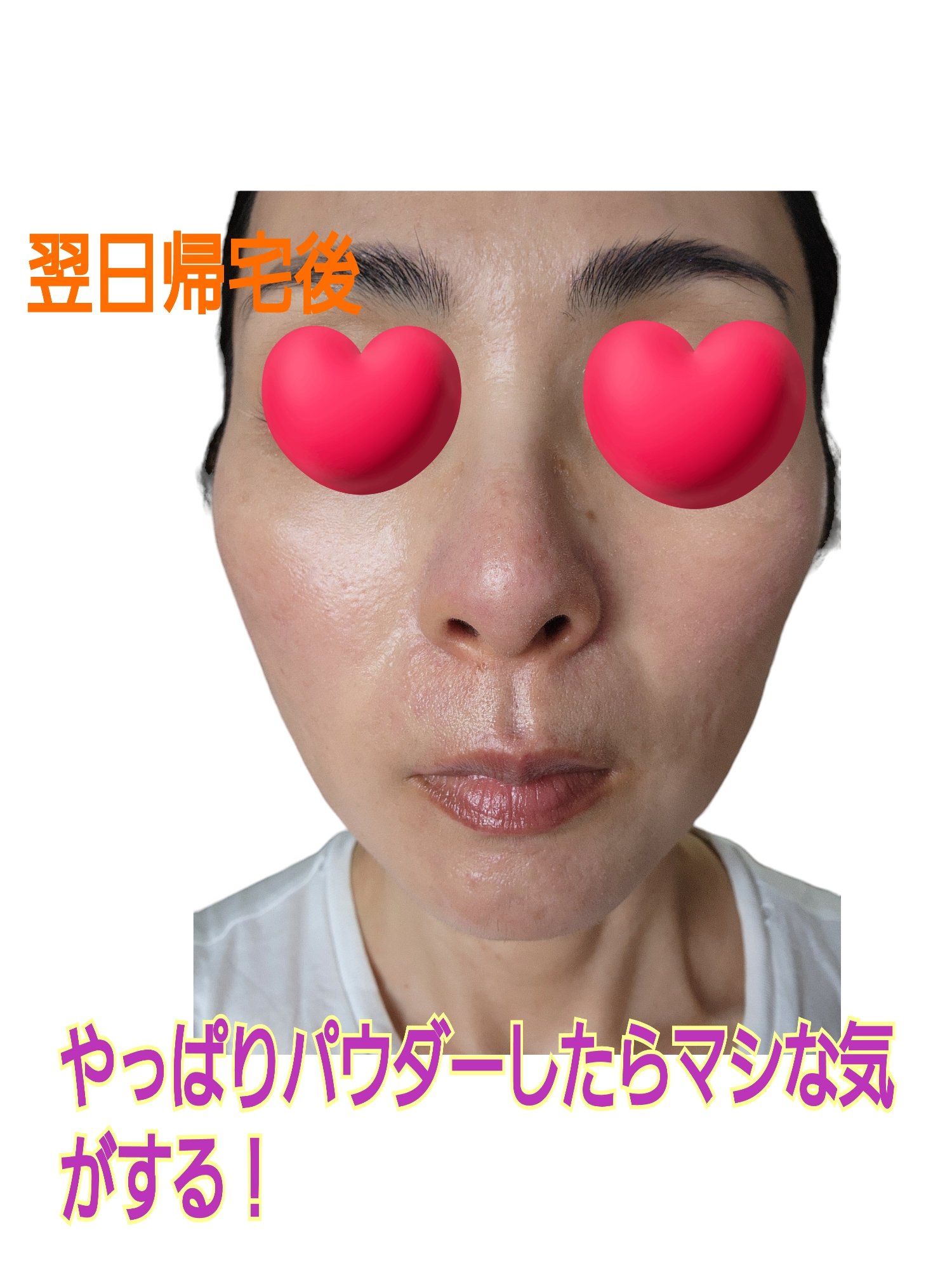 製品レビュー通り小さくて軽い🙌! めっちゃねばーるので塗るのかなり手こずった(目に垂れて来そうになるし)🫠 このクリームにはリフティング効果の期待できる金糸入りなので塗らないわけにはいきませんよね🤩 いっっっっった🥲 判子のようにポンポンと下から上に引き上げる様に押し付けるのがポイント(痛いから触れる程度しかいけなかったけど)🤓 何と、クリームの吸収を251%高めるとのこと!(何でそんな端数なのかというのはおいといて) 夜にはゾンビみたいな私の顔もマシだったかも!? これはいいです、この価格でこのクオリティ信じられない😲