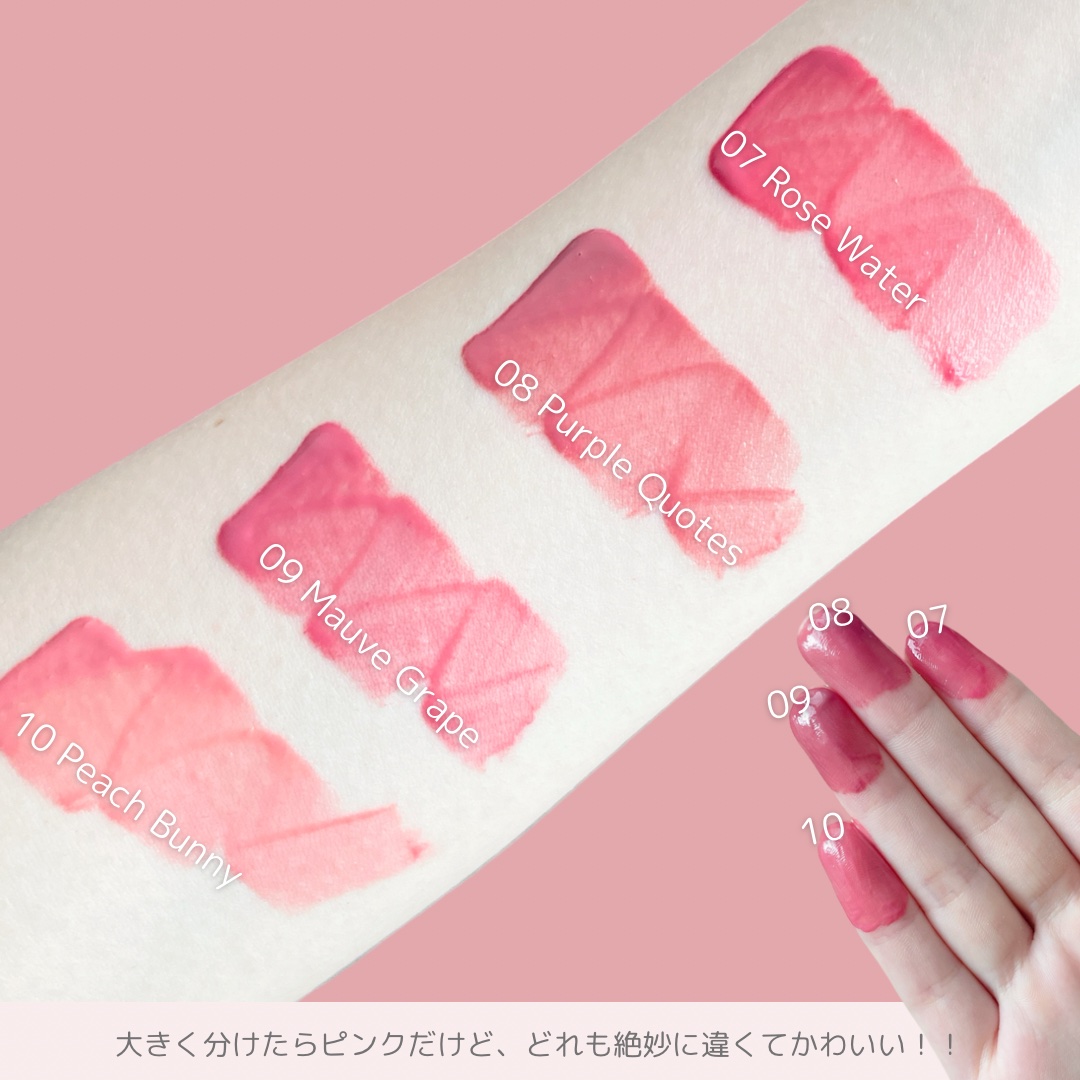 【メガ割おすすめウォニョンティント🐰桃カラー比較レビュー🍑】 AMUSE デューティント 03ヘルシーモモ 10ピーチバニー 13ジューシーモモメガ割でチェックしてほしい!ウォニョンティントことAMUSEのデューティント、使用してみて似てると...