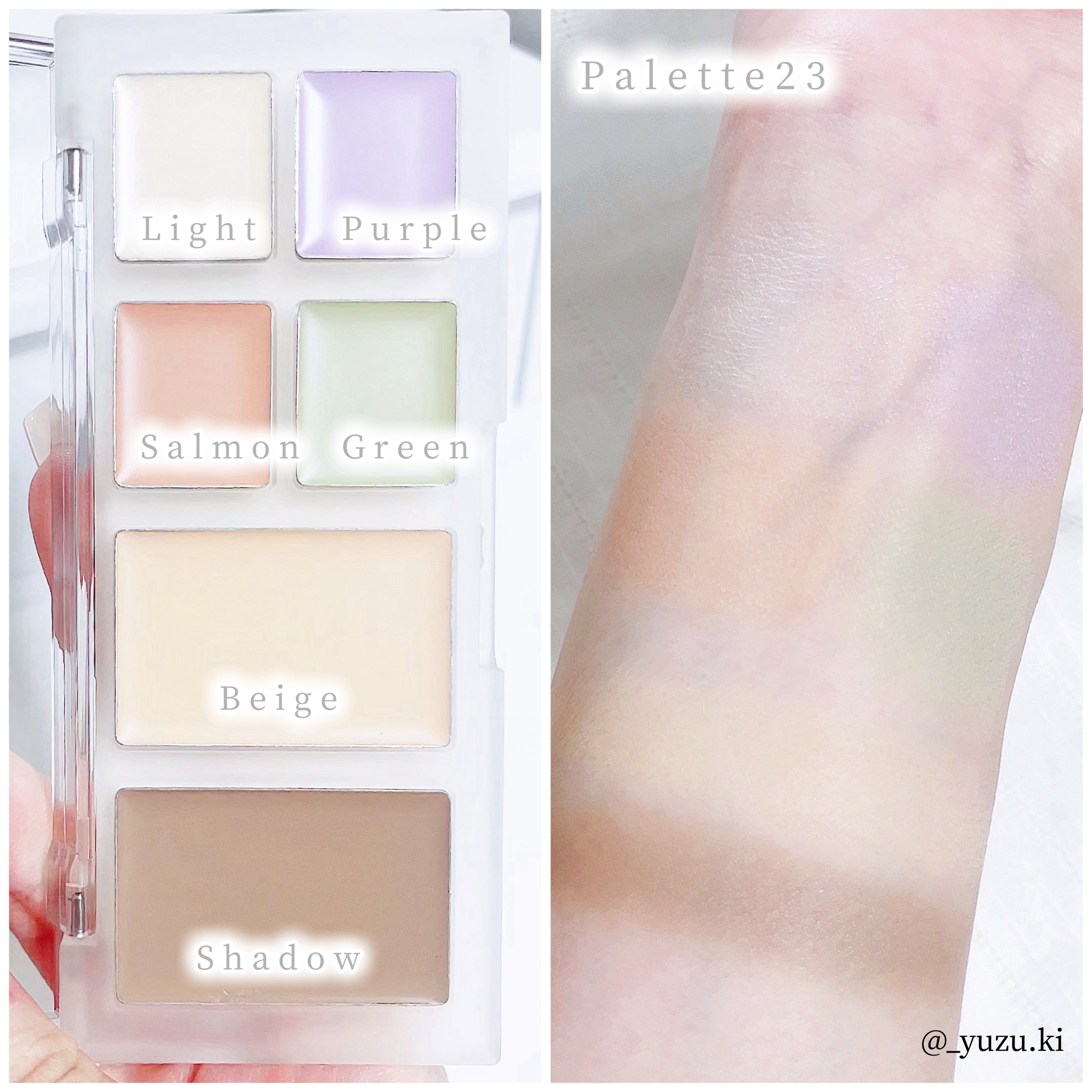 - 6色のカラーが入った、コンシーラーパレットで、コンシーラーとしてだけでなく、シェーディング、ハイライト、トーン調整が可能です。 ピーチ: クマカバーにおすすめ。保湿力が高く、ナチュラルなツヤ感です。 グリーン:ニキビや赤みのカバーにおすすめ。滑らかなテクスチャーで、カバー力が高いです。 パープル: くすみカバーにおすすめ。保湿力が高く、ナチュラルなツヤ感です。 ハイライト: 光の屈折を利用し、自然で柔らかい輝きを与えます。 シェーディング: 自然に影を演出し、しっかりと密着します。 コンシーラー: 滑らかなテクスチャーで、カバー力が高いです。