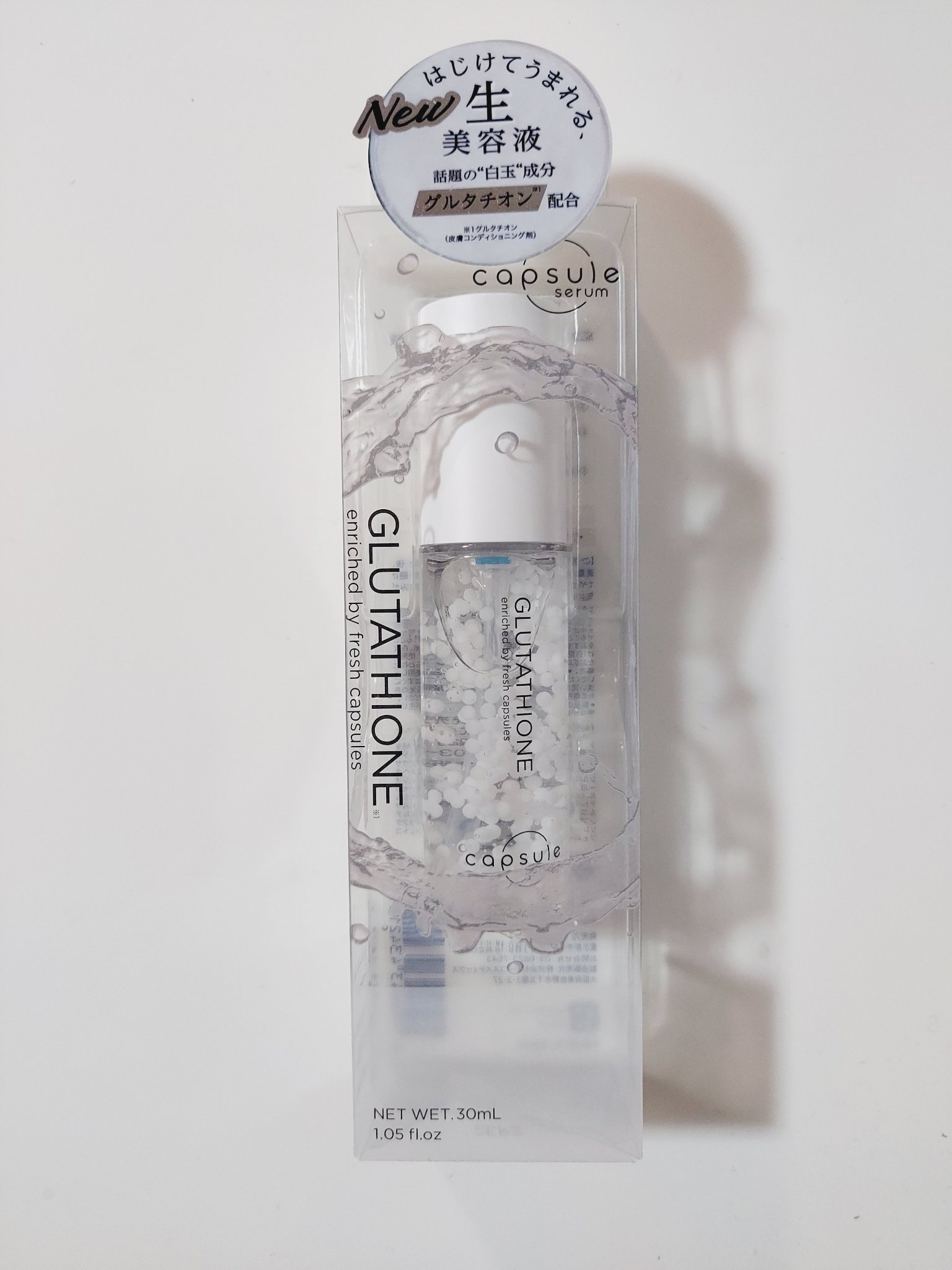 - ①はじける白玉!注目の"グルタチオン"*1をカプセルに厳選配合 ②新鮮なグルタチオンが肌に浸透*2 ③グルタチオン×2種のビタミンC誘導体*3が総合的にアプローチ ④コラーゲン、ヒアルロン酸、3種類のセラミド、ナイアシンアミド、ツボクサエキス(CICA)、フラーレン等11種類の整肌成分を同時に配合 ⑤肌なじみのよい使い心地 ⑤毛穴*4、ざらつき*5、くすみ*5・透明感5、キメ・ツヤもコレ1つで。4in1美容液。 はじけて生まれる生美容液。-独自カプセルが、成分本来のチカラをサポートするこだわりの美容液- *1グルタチオン(皮膚コンディショニング剤) *2角質層まで *3パルミチン酸アスコルビルリン酸3Na、3-グリセリルアスコルビン酸(酸化防止剤) *4乾燥による毛穴の開き *5乾燥による
