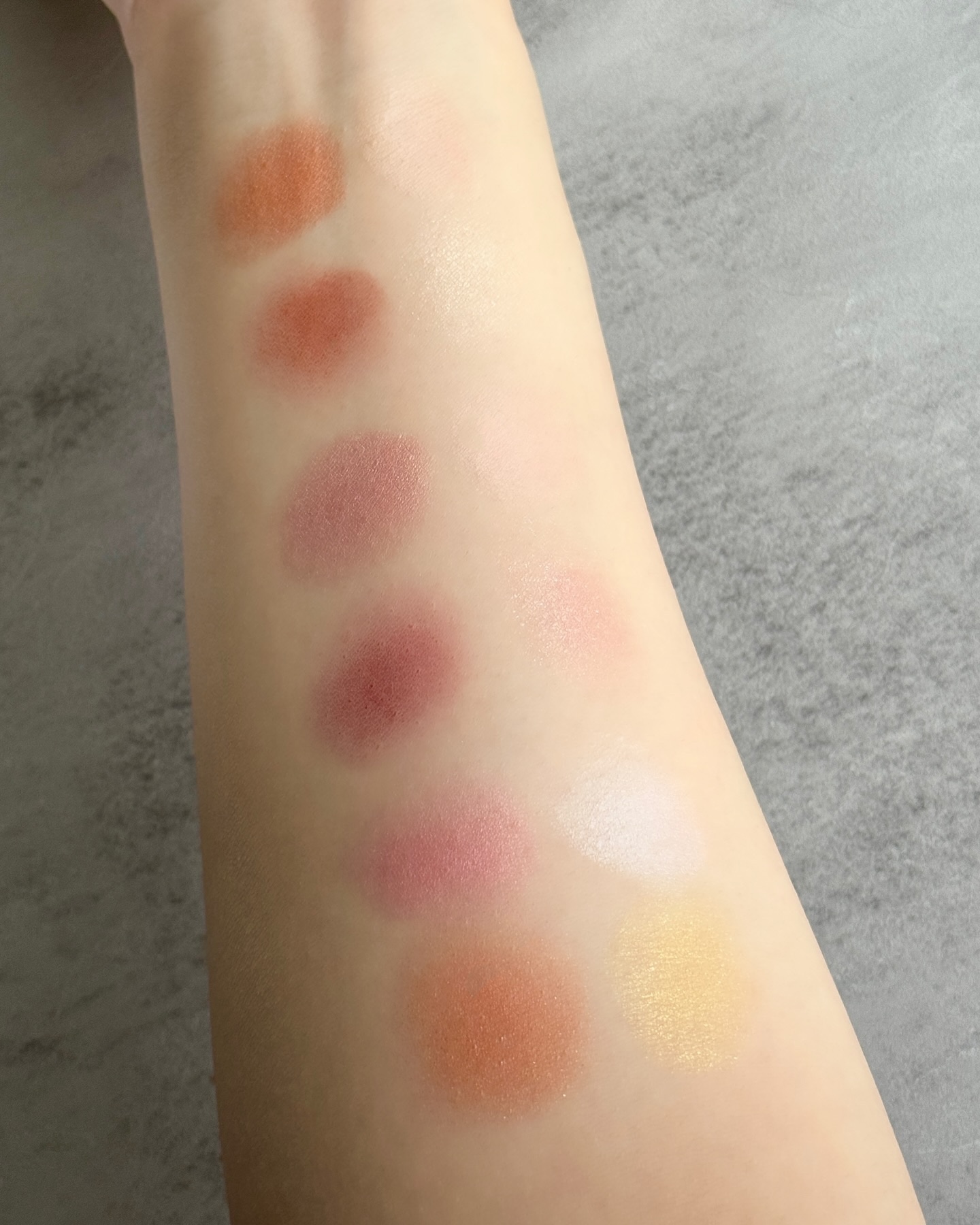 リップ3つはバームタイプで発色は弱め。体温で段々と色が出てくる感じですねぇ〜 チークはどれもかわいいから全部好き(´;ω;`) 32番が手に塗った感じが可愛かった♡ チークブラシは毛がしっかりしてて少しかためでした❁︎