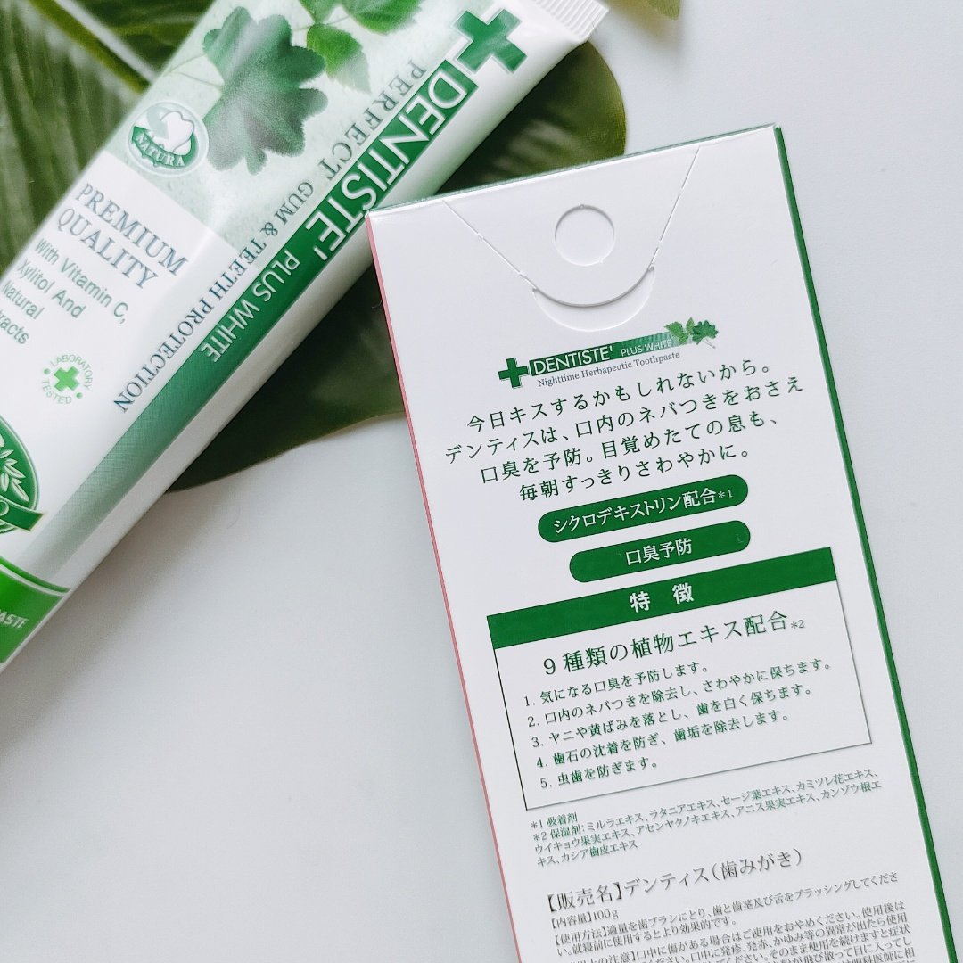 - 目覚めてすぐKissできる 恋する♡ハミガキ 「デンティス」は、口臭予防のできる歯磨き粉です。長時間息スッキリ! ■口臭の元を洗い流し、爽やかな息*1へ ニオイの原因となる成分を吸着除去するとされる「シクロデキストリン」*2配合。 オリジナルミントフレーバー*3がイヤなニオイや苦み成分をマスキングして爽やかな息に導きます。 また、口臭の元である汚れを洗い流し、ブラッシング後の口臭を防ぎます。 ■植物エキス*4で口内を潤す 数種類の植物エキス*4により、口内を潤し口臭予防をサポートします。 *1:マスキング効果 *2:吸着剤 *3:香料 *4:ミルラエキス、ラタニアエキス、セージ葉エキス、カミツレ花エキス、ウイキョウ果実エキス、アセンヤクノキエキス、アニス果実エキス、カンゾウ根エキス、カシア樹脂エキス(保湿剤)