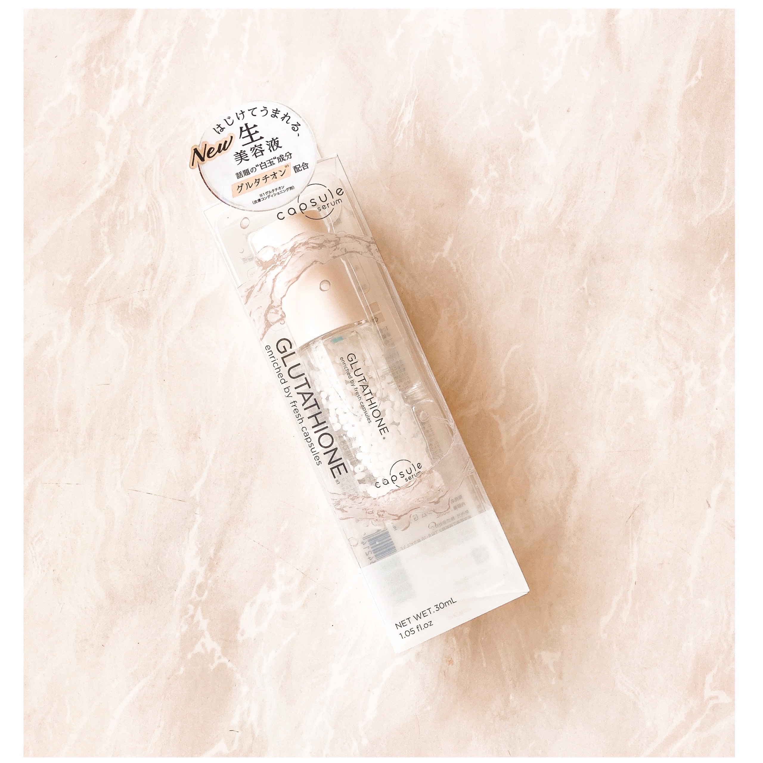 - ①はじける白玉!注目の"グルタチオン"*1をカプセルに厳選配合 ②新鮮なグルタチオンが肌に浸透*2 ③グルタチオン×2種のビタミンC誘導体*3が総合的にアプローチ ④コラーゲン、ヒアルロン酸、3種類のセラミド、ナイアシンアミド、ツボクサエキス(CICA)、フラーレン等11種類の整肌成分を同時に配合 ⑤肌なじみのよい使い心地 ⑤毛穴*4、ざらつき*5、くすみ*5・透明感5、キメ・ツヤもコレ1つで。4in1美容液。 はじけて生まれる生美容液。-独自カプセルが、成分本来のチカラをサポートするこだわりの美容液- *1グルタチオン(皮膚コンディショニング剤) *2角質層まで *3パルミチン酸アスコルビルリン酸3Na、3-グリセリルアスコルビン酸(酸化防止剤) *4乾燥による毛穴の開き *5乾燥による