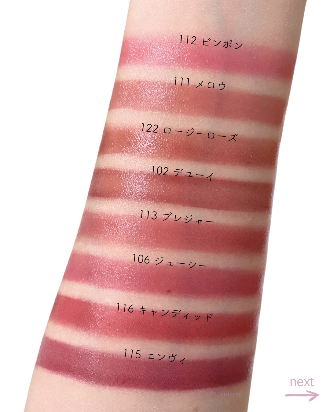 新色122ロージーローズはやや青み寄りの大人っぽく落ち着いたローズレッドで 2ndイエベのブルベ夏冬タイプにおすすめです🙆♀️ 唇に綺麗にフィットする斜めのアプリケーターも塗りやすいと好評ですよ✨ 濃く仕上げたい方は重ね塗りして調整してみてくださいね☺︎