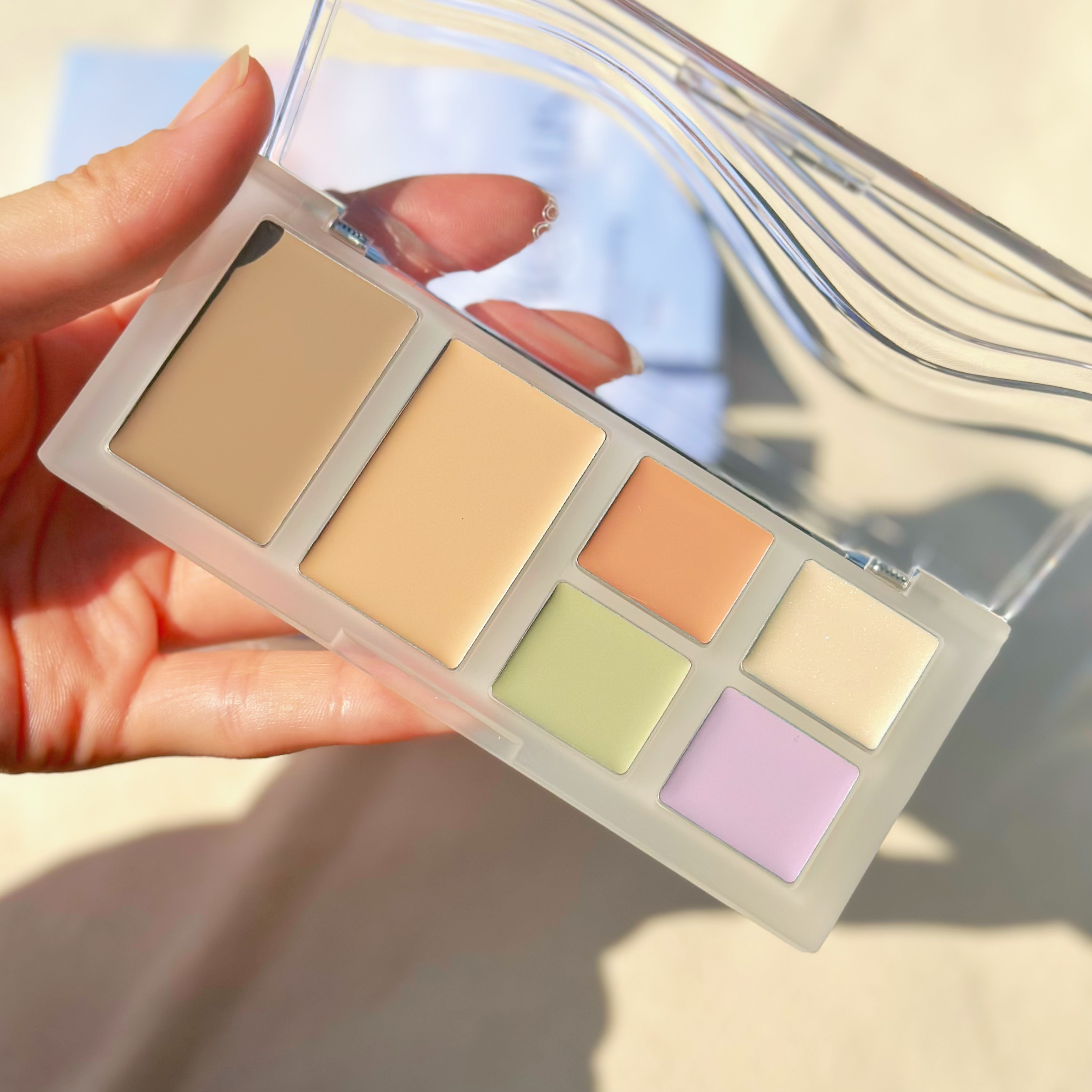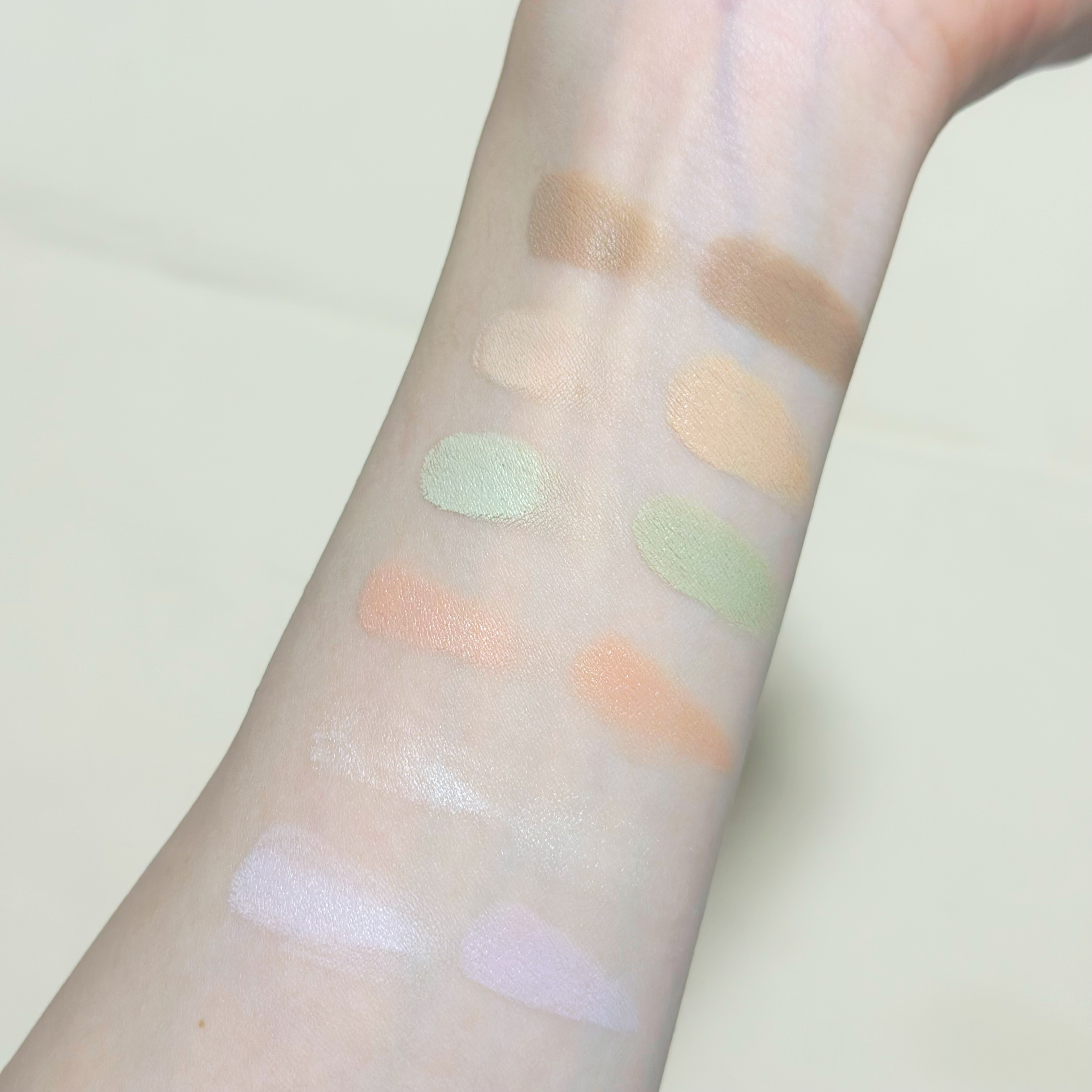 ナチュラルに肌へ馴染む 6色入りのコンシーラーパレット🎨 グリーン:赤みのカバー ピーチ:クマカバー パープル:くすみや色素沈着カバー 1パレット持っているとあれこれ出さずに済む!ベースメイクも時短に⏰ 柔らかめのバーム状テクスチャーで肌馴染みが良く 初心者さんでも使いやすい◎