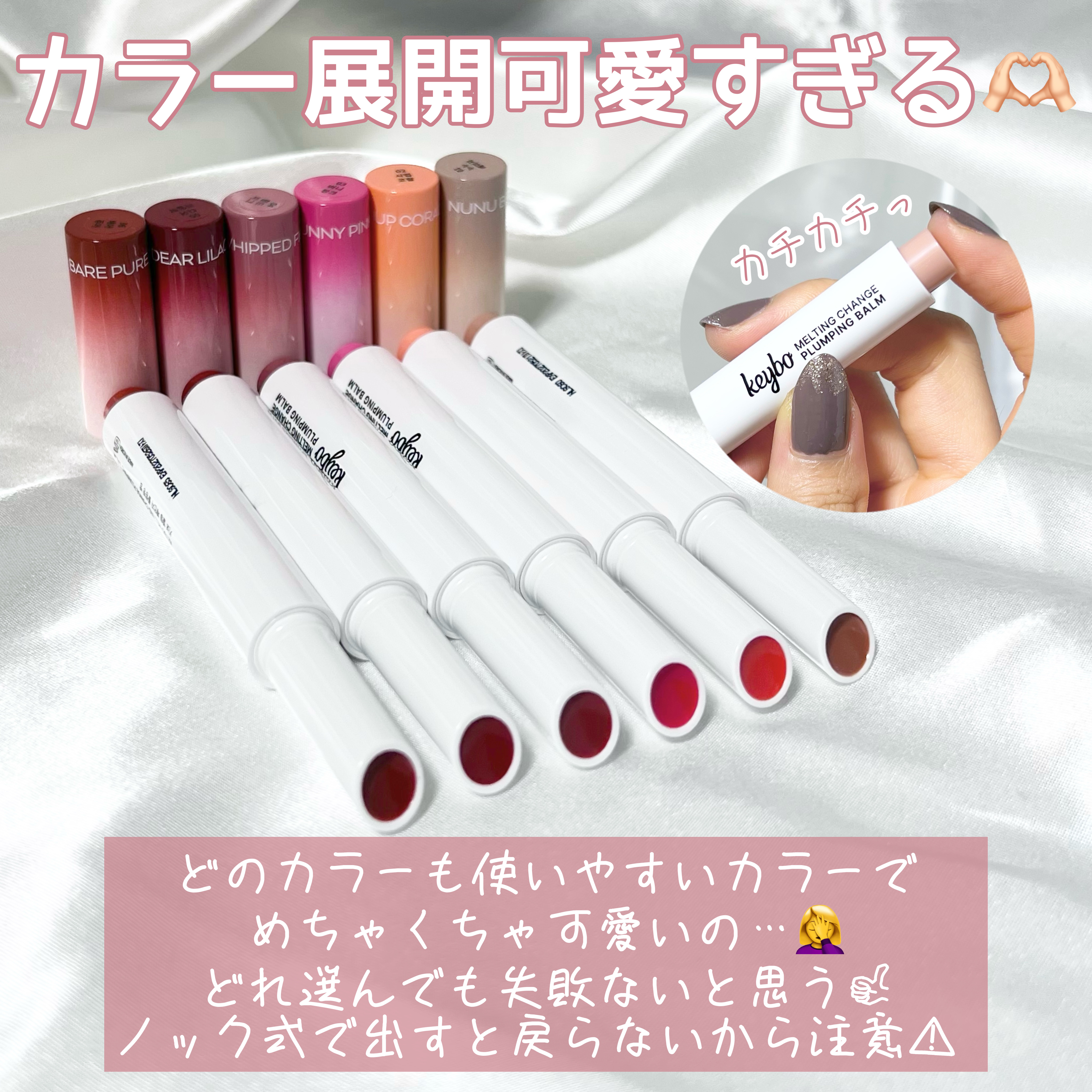 とろけるリップバームタイプのプランパー! 正直とろけるバームタイプってプランパー効果謳ってるものでもそこまで刺激ないし効果はまあまあだよね🤔⁈ ジワジワきます…😂 ピーク時は激辛な物食べた時みたいに唇ヒリヒリ💦 縦ジワ行方不明🫢 バームだからツヤ感もめちゃくちゃ綺麗で ぷるんとした唇に💋🫧