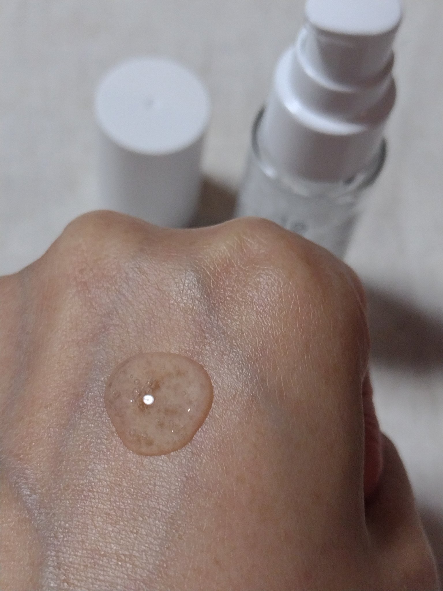 半透明のゆるめのジェルテクスチャー。みずみずしいさらっとした伸びがとても気持ちいい。 美容液は成分が濃いイメージだからとろみやぺたっとしたなじみが多い中、ここまでさっぱりしているなんて驚き。水分と油分のバランスを整え、毛穴も引き締まるから過剰...
