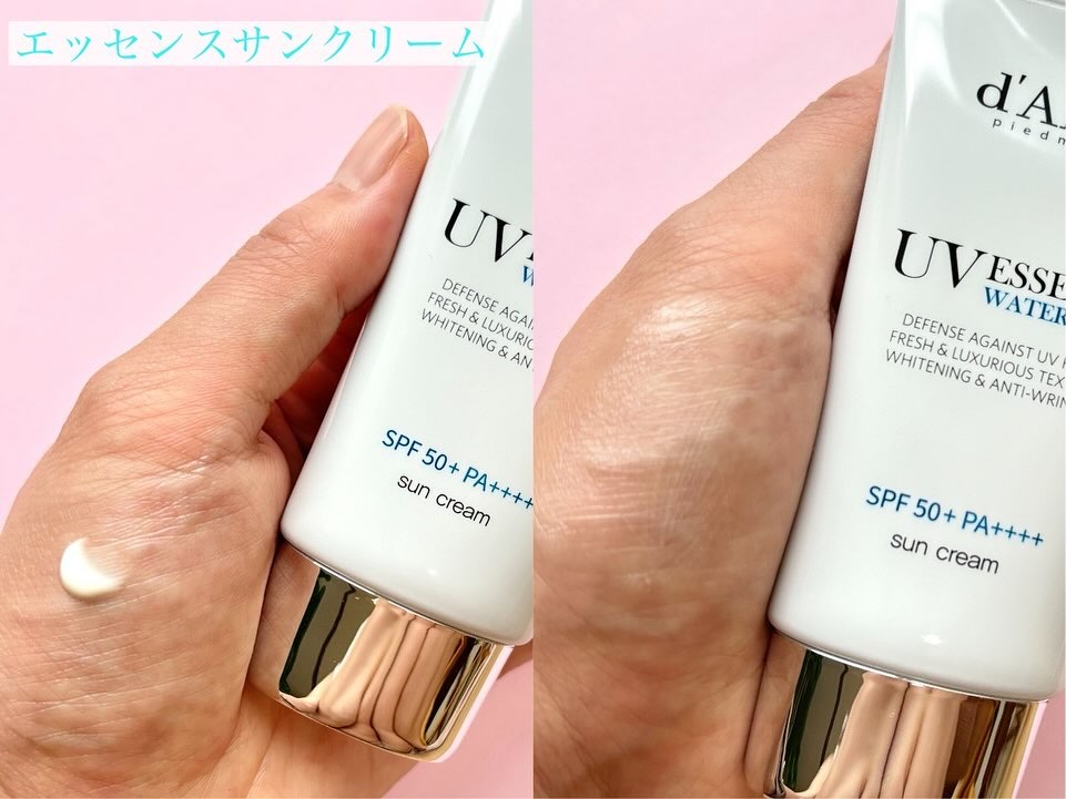 秋も紫外線対策が大切ということで、ダルバのサンクリーム2つを使ってみて違いをレビューするよ。 SPF50+PA++++で日焼け止めとしても使用することができ、紫外線から肌を守ります。 柔らかいテクスチャーでほんのりピンク色で塗るとツヤ感があり肌のトーンアップが叶います。