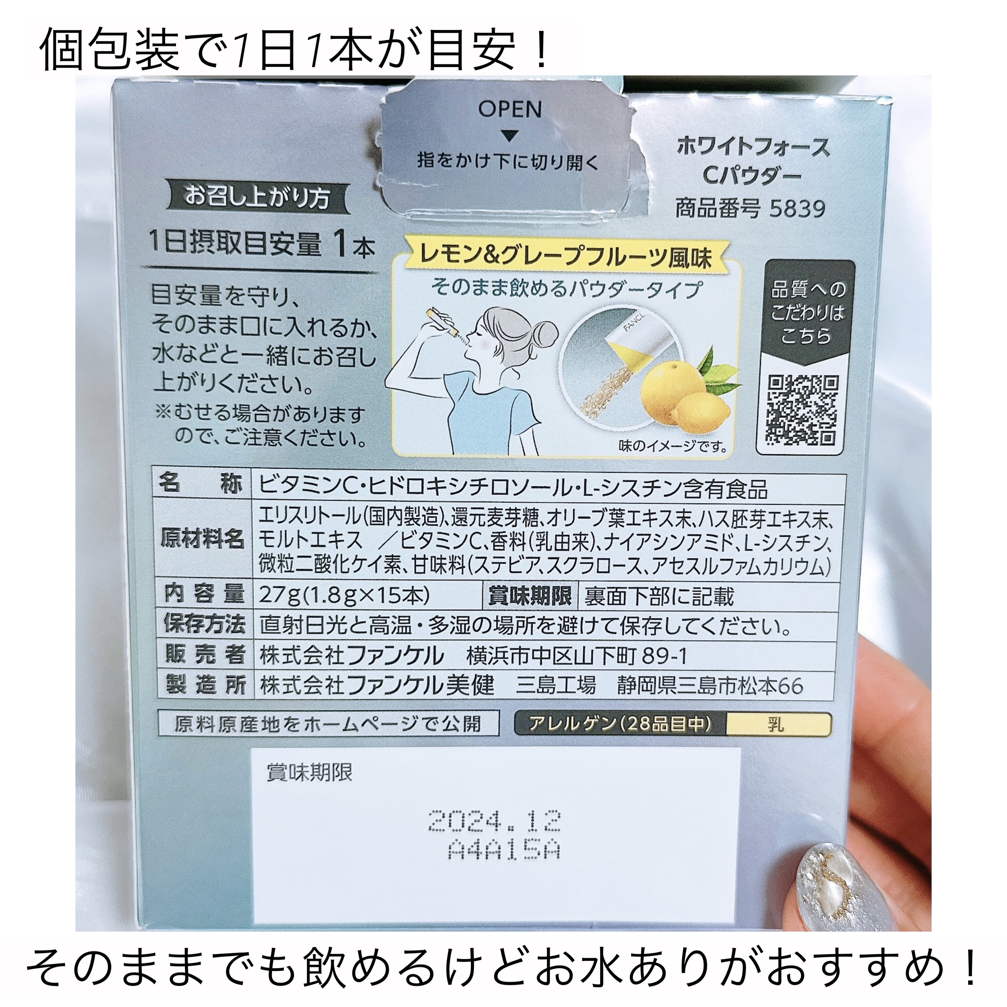 ファンケルさまからいただきました!\透明感のある毎日のために/夏の限定人気商品が定番化💛【FANCLホワイトフォースCパウダー】時間差で溶け出す「トリプルビタミンC*」1,000mg配合🌿特徴の違う3種類のビタミンCが時間差で溶け出すから体内...