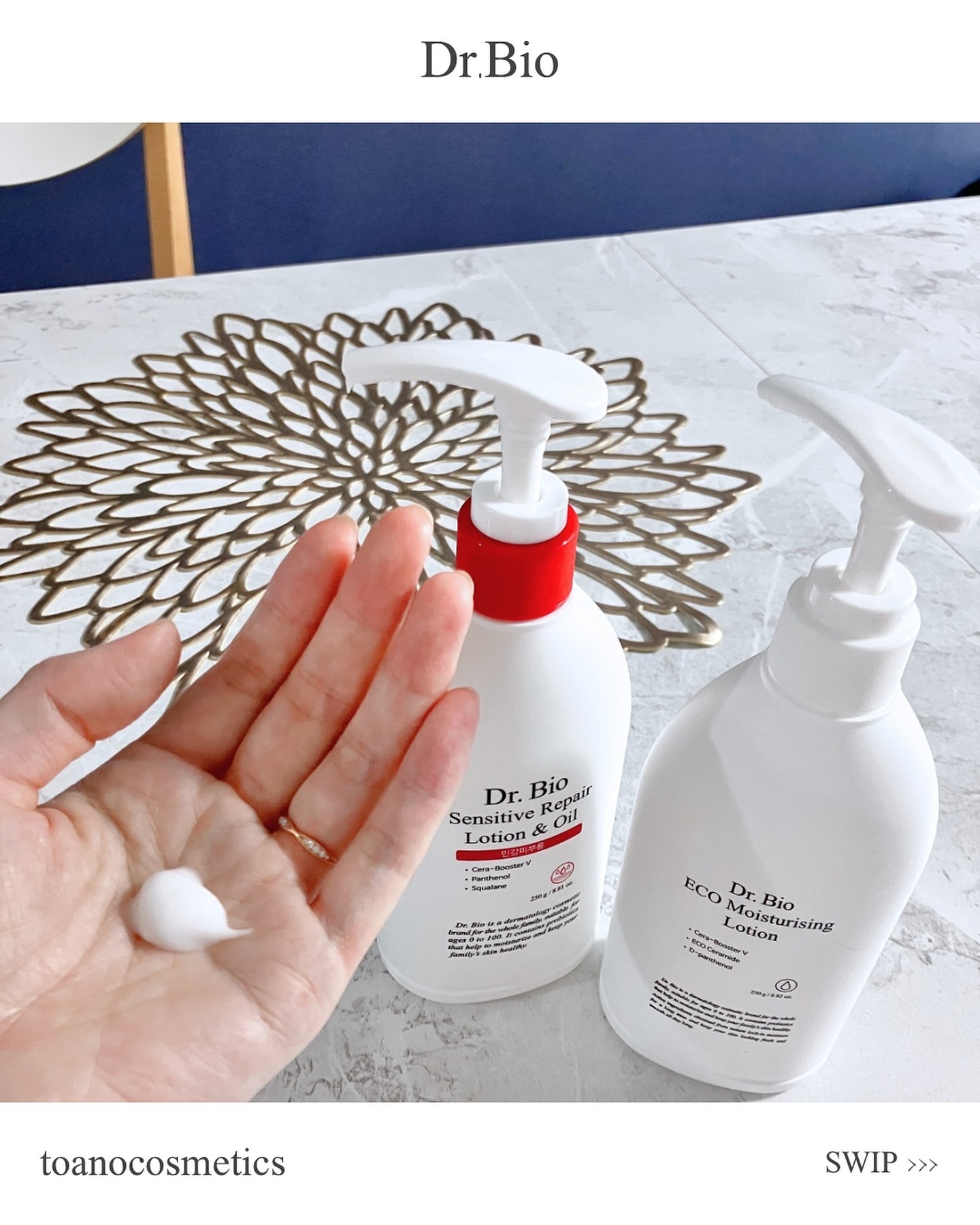 - Dr.bio製品は皮膚本来の力をサポートする植物由来成分で作られ、新生児から敏感肌の大人まで家族みんなが一緒に使えます。春・夏シーズンにも気軽に使える使用感です。乾燥肌や熱をもった肌のために、べたつきとまとわりつく感じを軽減し、水分+クーリング感+爽やかさだけをたっぷり詰めたスージング乳液。