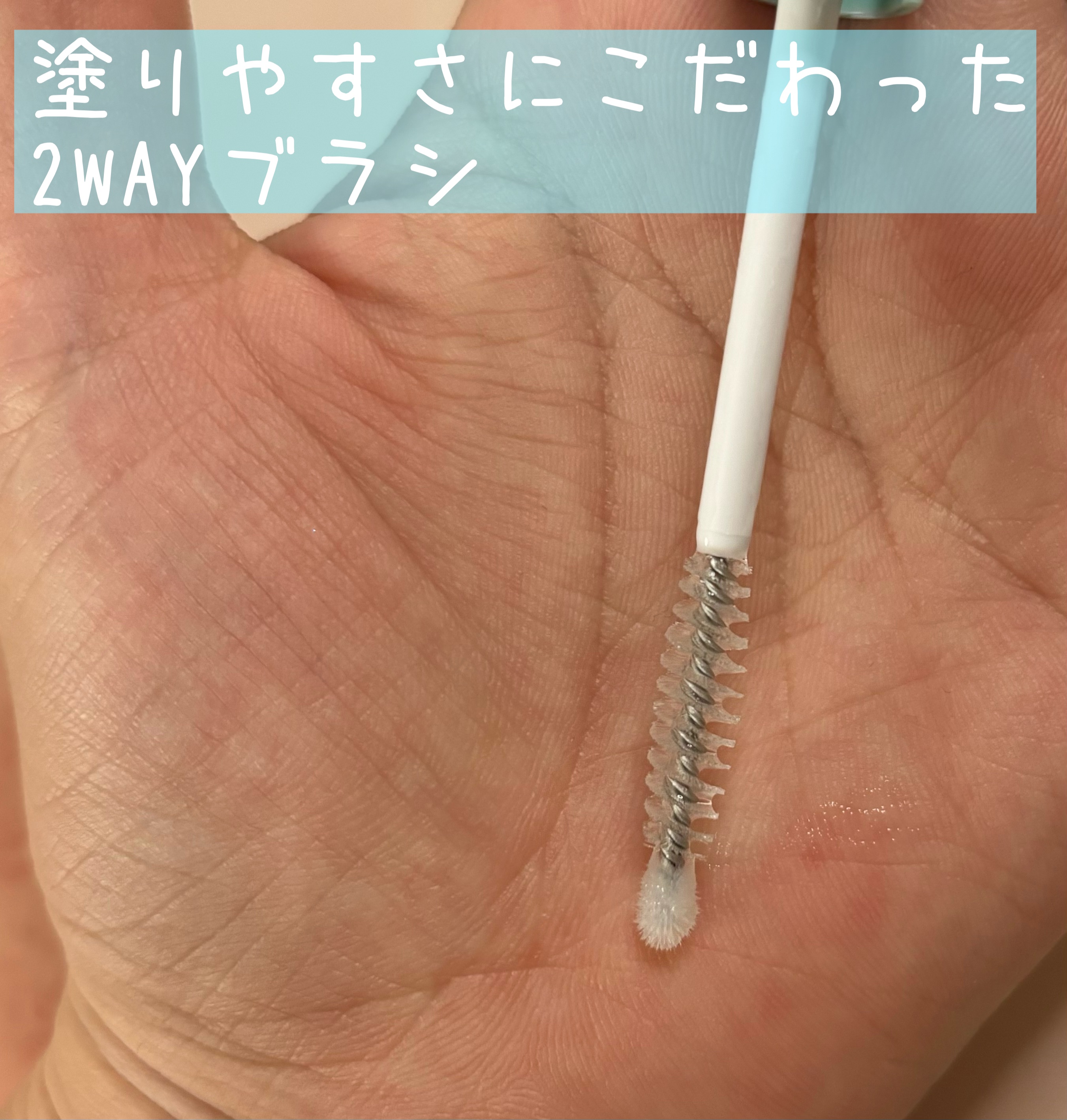 毛髪診断士®監修のまつ毛美容液で、ヒト幹細胞を含む美容成分99%配合👀 ジェル状のやや粘度のある美容液のため、塗っていて液垂れしにくいのが、オススメポイントです👍 先端がチップになっていて、根元側がスクリューブラシの2WAYになっていて目尻や際などの細かい部分にも塗りやすい工夫がされています😊