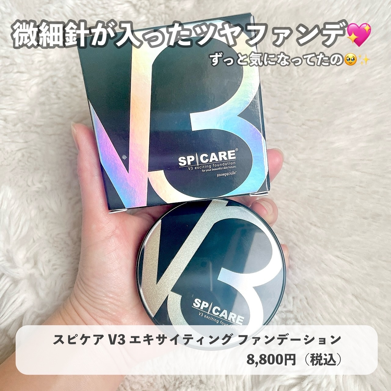 V3ファンデーション第一弾のエキサイティング ファンデーション✨ 使ったことある人、使ったことはなくてもみたことある人は多いんじゃないかな? 天然微細針「イノスピキュール」配合が最大の特徴💡 針?と聞くとちょっと怖いですが、実際に使ってみると刺激感は私は全く感じませんでした👏 日々のメイクが、スキンケアにもなるのはとっても嬉しいですよね☺️💕