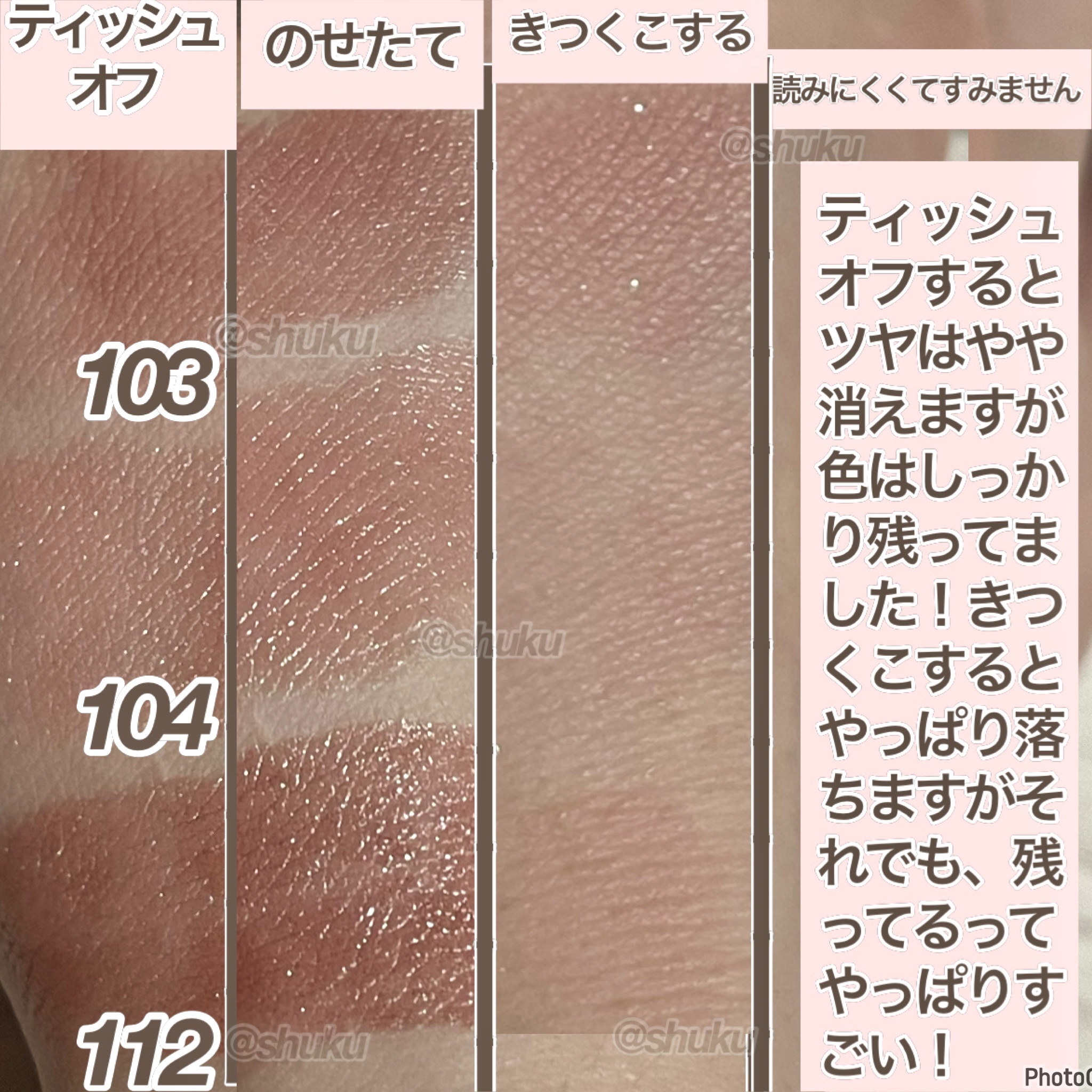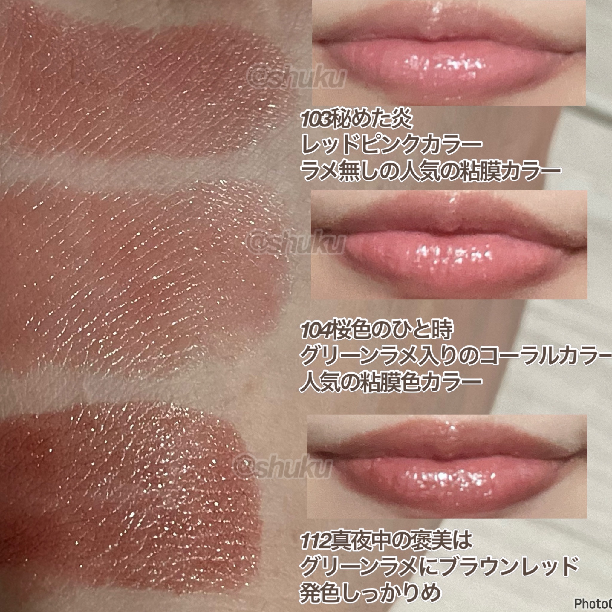 1位🥇104 桜色のひと時:やさしいグリーンパールを纏う、柔らかく深いオールドピンク 2位🥈103 秘めた炎:上品でシックなミルクティーブラウン 3位🥉112 真夜中の褒美:グリーンパールが光るレッドブラウン
