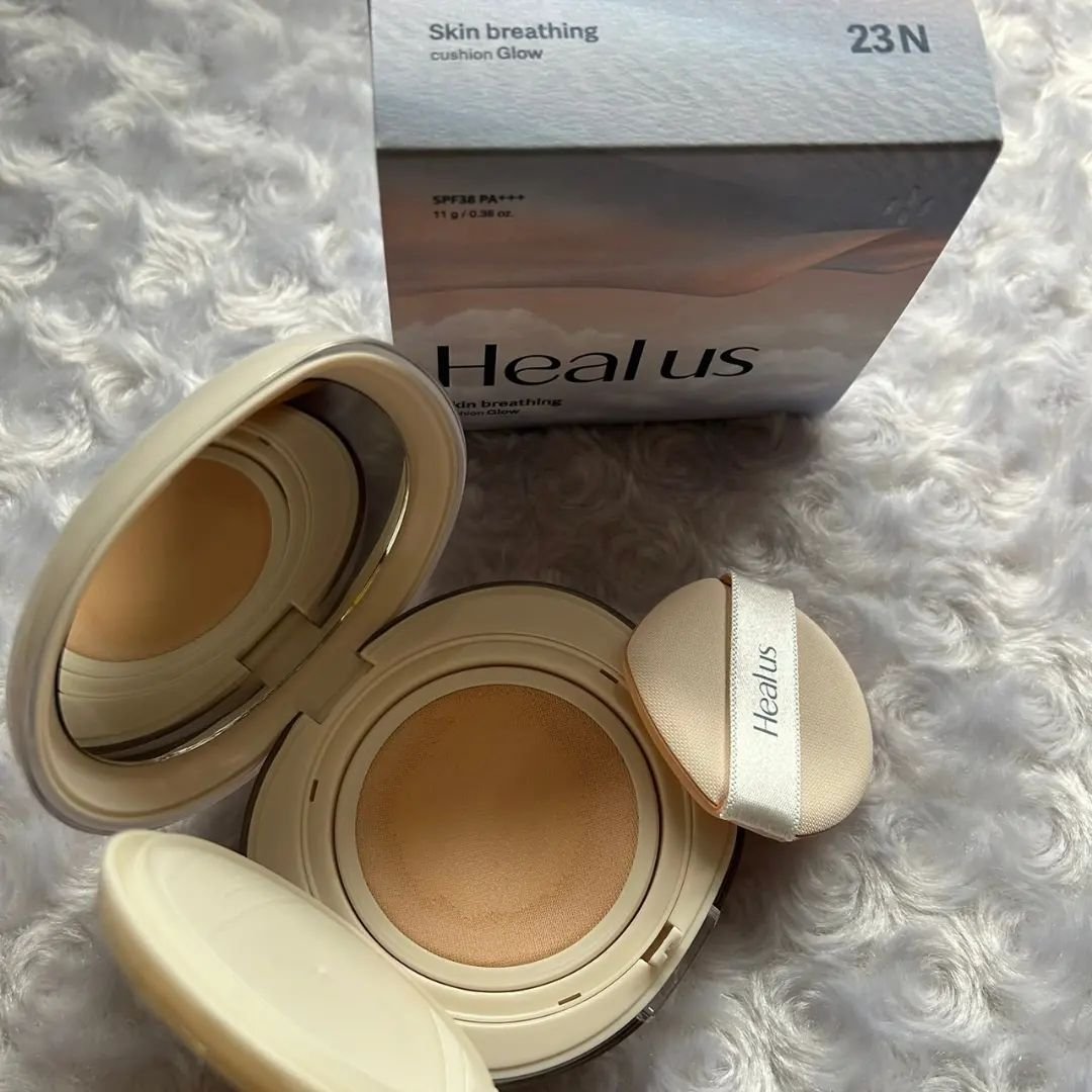 Healus(ヒーアス)とは🤔 Dr.Gの姉妹ブランドで 2024年2月にローンチした メイクアップブランドです🇰🇷🆕 こちらは、つけ心地が抜群に良い🙆♀️ クッション部分がメッシュになっていて 多く付き過ぎないところとか👌 エッセンス成分が70%配合の為 しっとりとした水分光🩵で テカリ過ぎない艶感のある仕上がりに✨