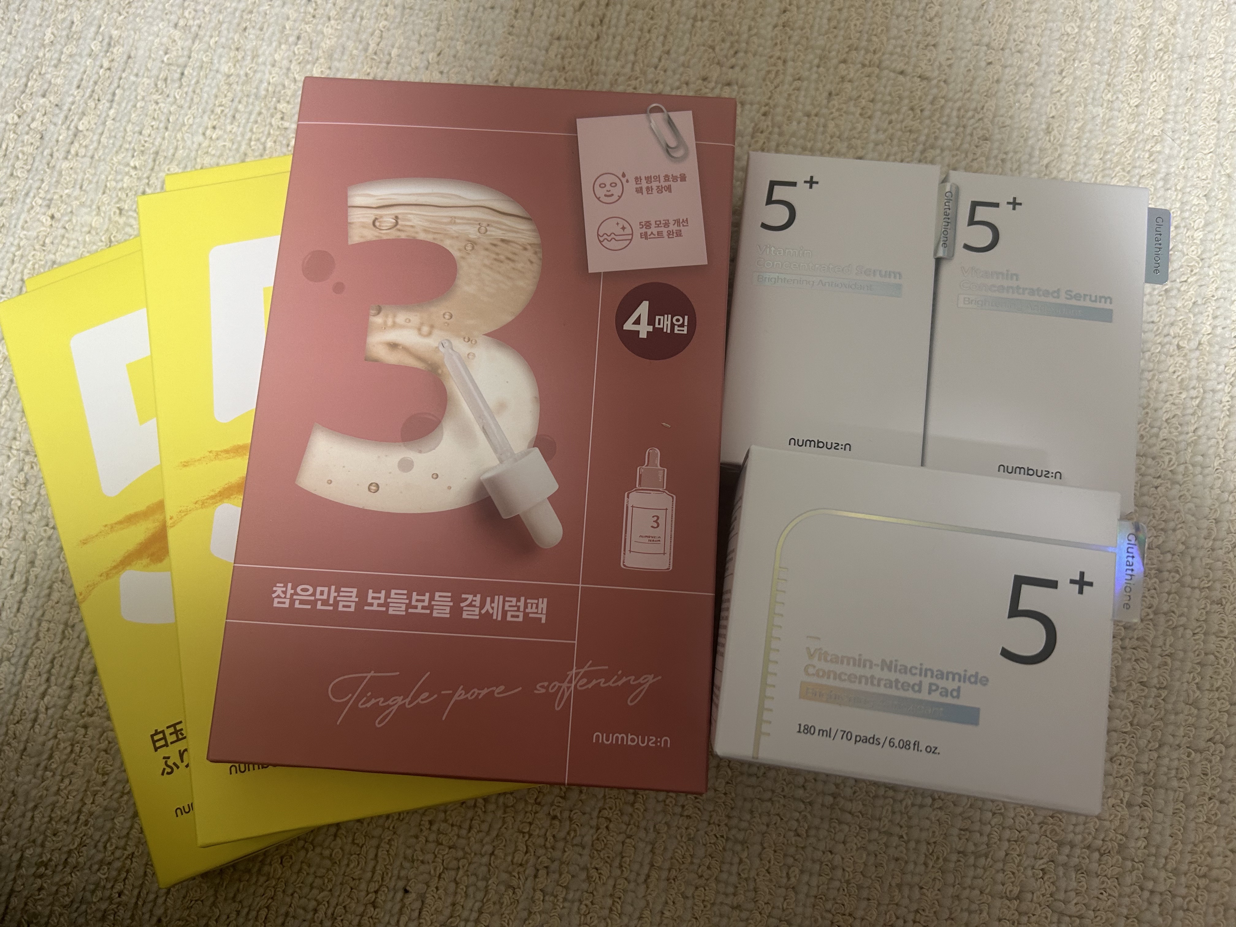 買って1週間もせずに届きました! クリームとクレンジングは今度ちゃんとレビューしていきます! 5番 白玉グルタチオンCふりかけマスク 5番 白玉グルタチオンC美容液