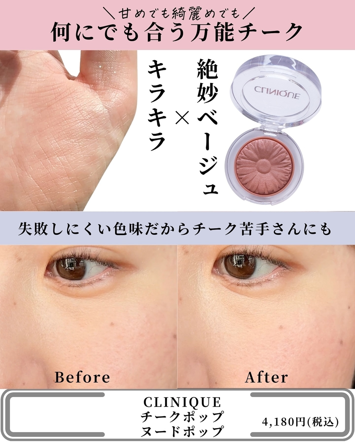 | ベージュと偏光パールのマリアージュが、絶妙な色合いになるチークて✨ | 詳細を見る | ||
