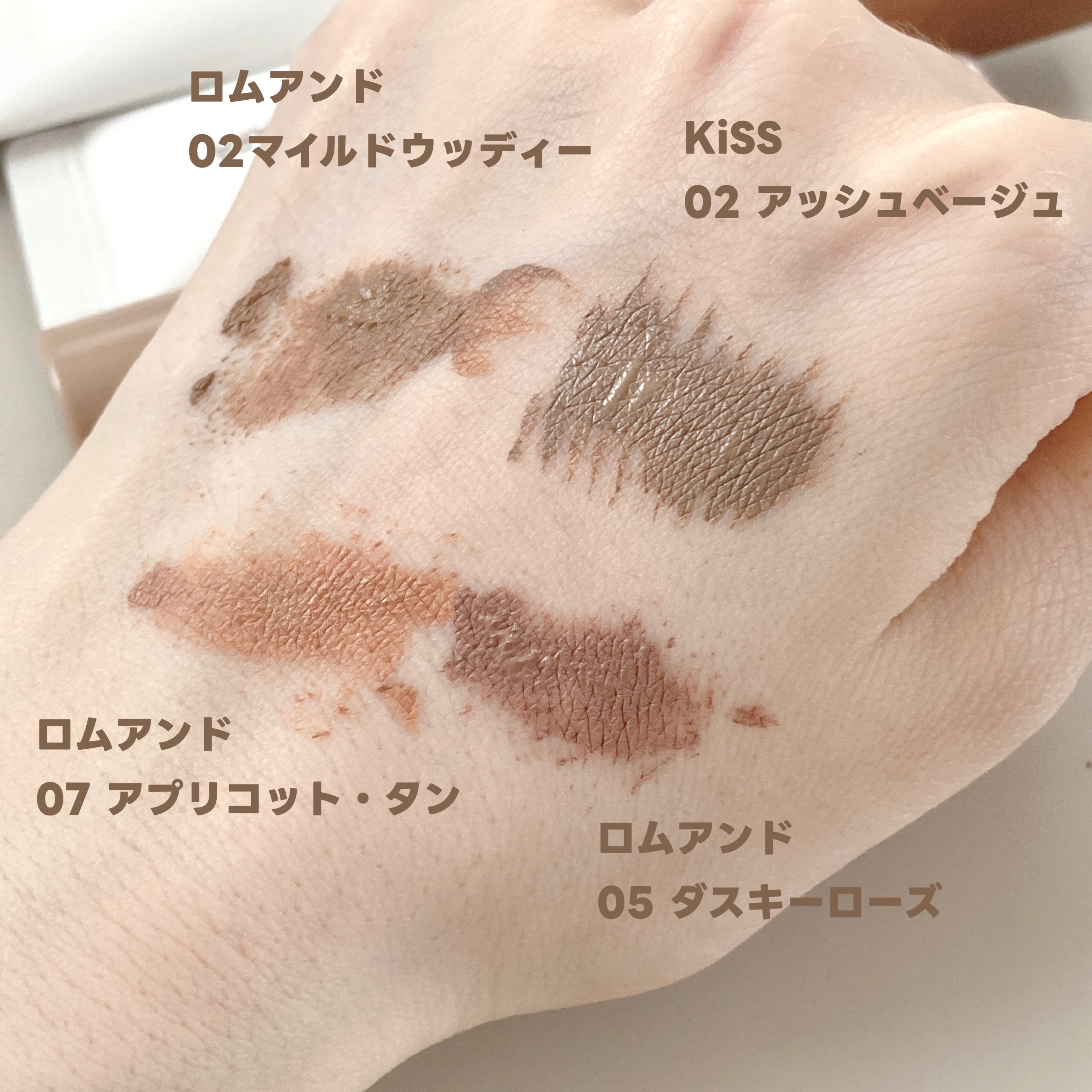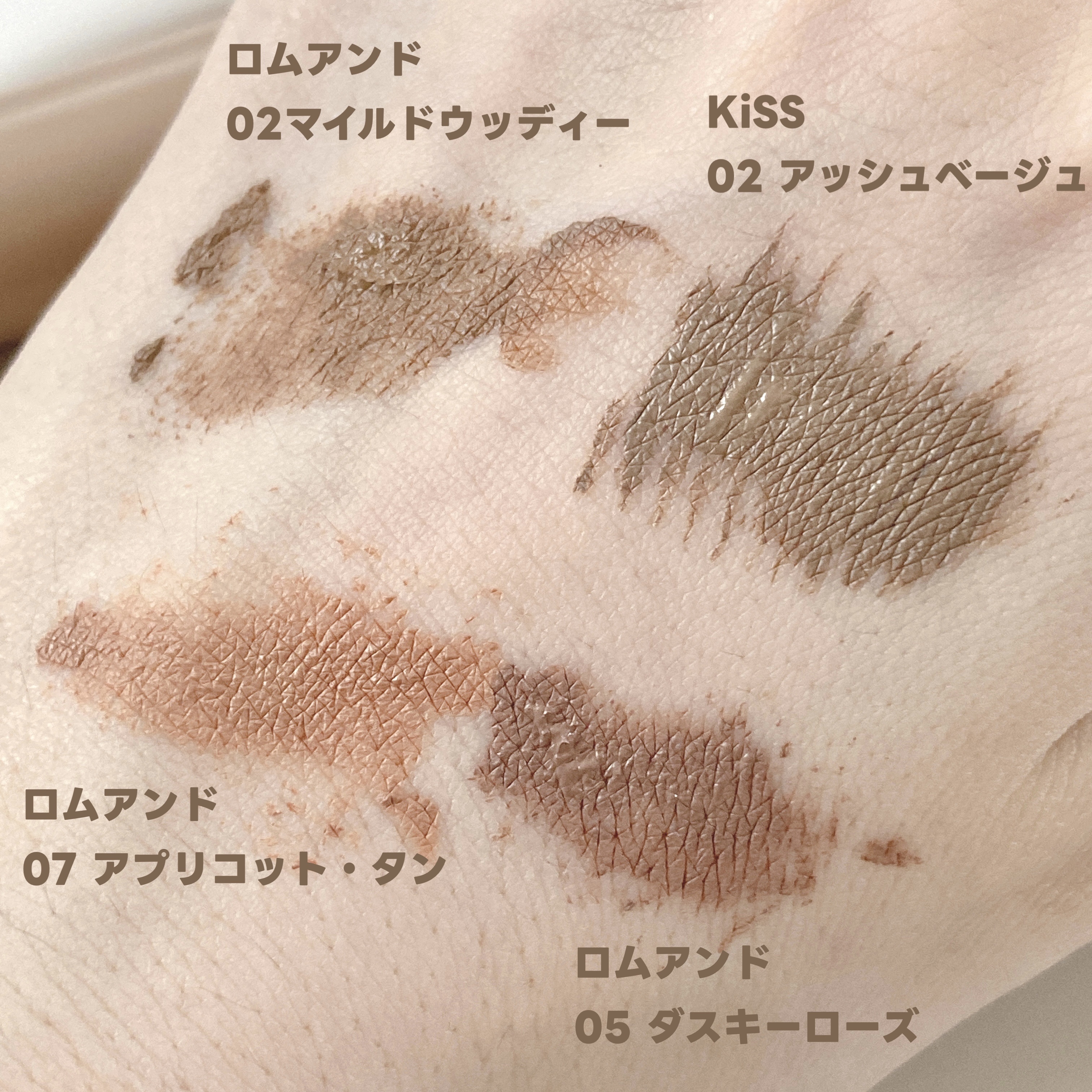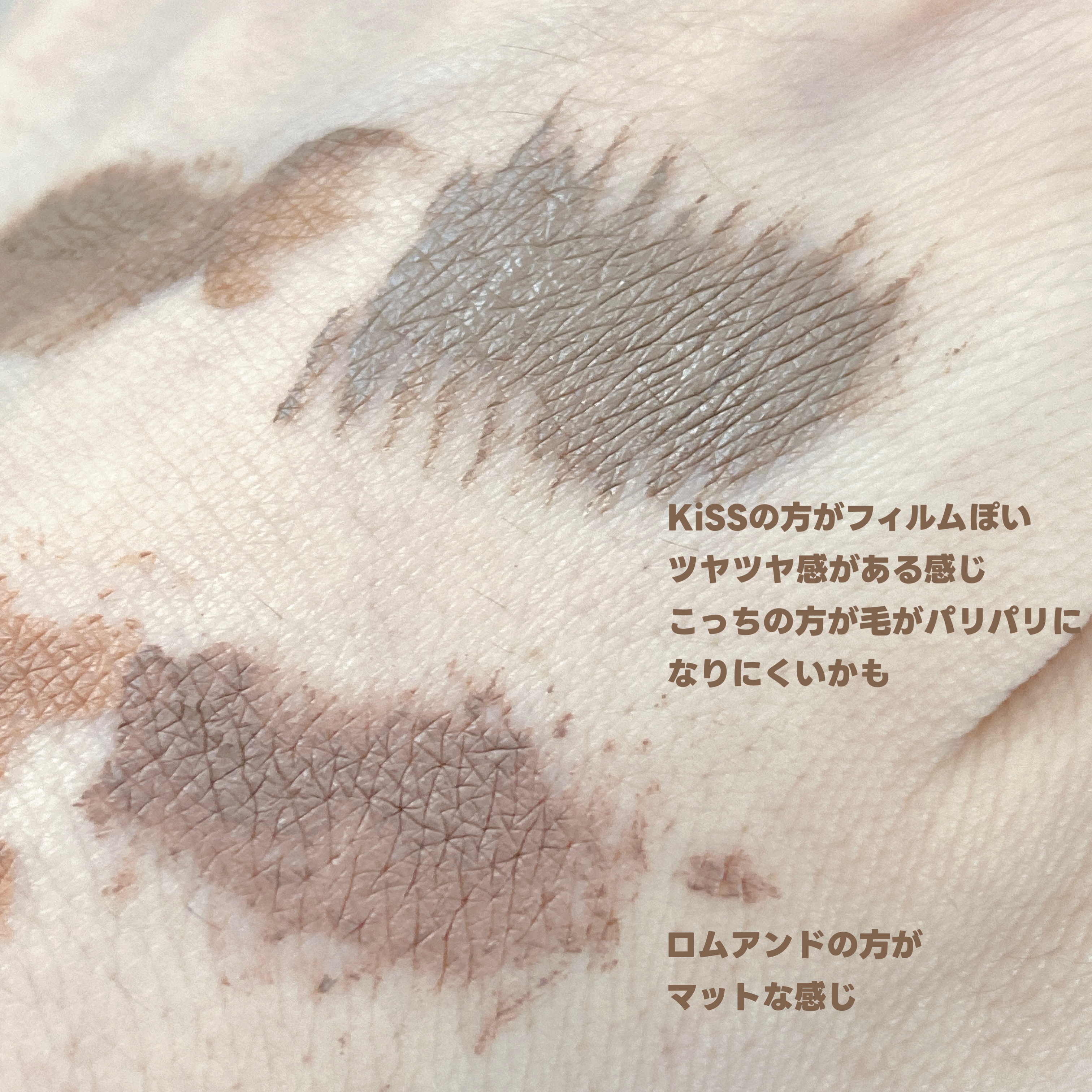 暗髪さんやアッシュ系ヘアの方におすすめのアイブロウマスカラKiSSはブリーチなしでも、簡単に今どきのうす眉に地肌にもつきにくくて、アイブロウぶらしでとかすと普段使いもしやすいですrom&ndはこの中ではピカイチの耐久性!地肌につきやすい...