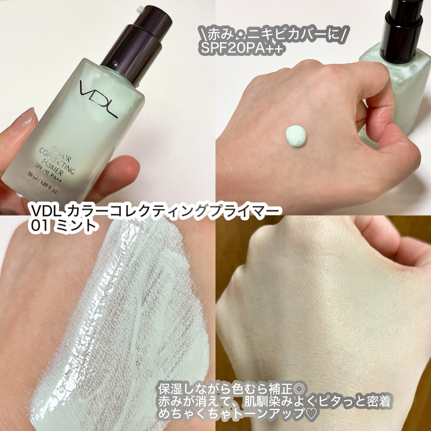 ローズは、くすみをカバーして血色感を与えてくれる💗 肌の色を均一に整えてくれてツヤ感も🩵 VDLのカラーコレクティングプライマーはとっても伸びが良いので少量ずつ使うのがオススメ🫶🏽 メイクによるトーンアップ効果あるので明るい印象になる✨ 不自然に明るくなるとかじゃないのも使いやすくて嬉しい☺️