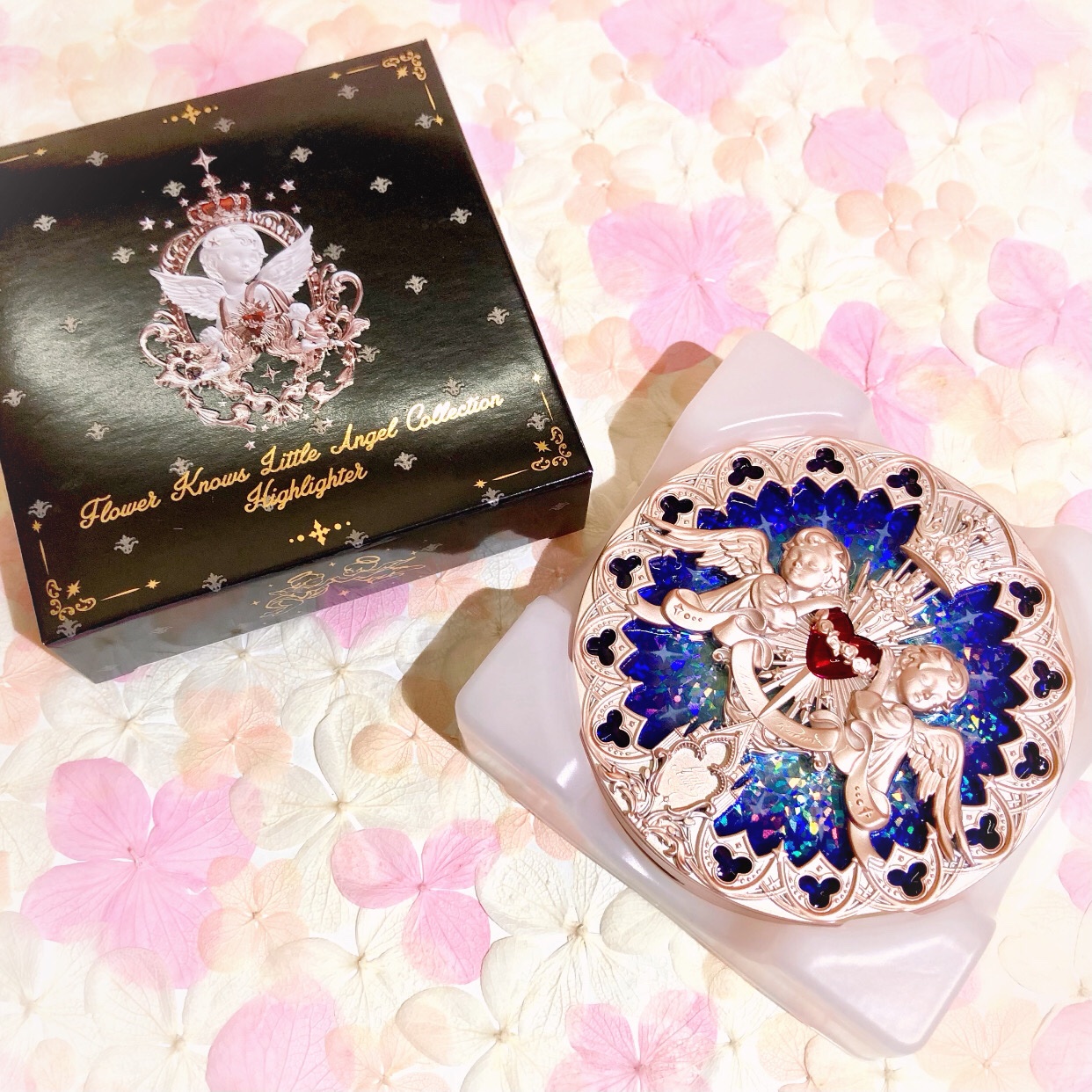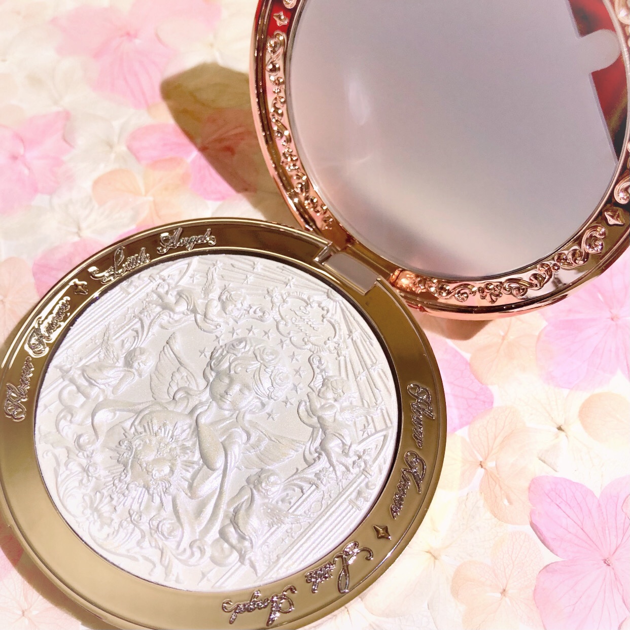フラワーノーズのハイライトを買い足しました。ツヤも欲しくって。 パケ、やっぱりかわいい。可愛すぎる!!! 天使モチーフが大好きなので、こういうコスメはもはやご褒美でしかない。