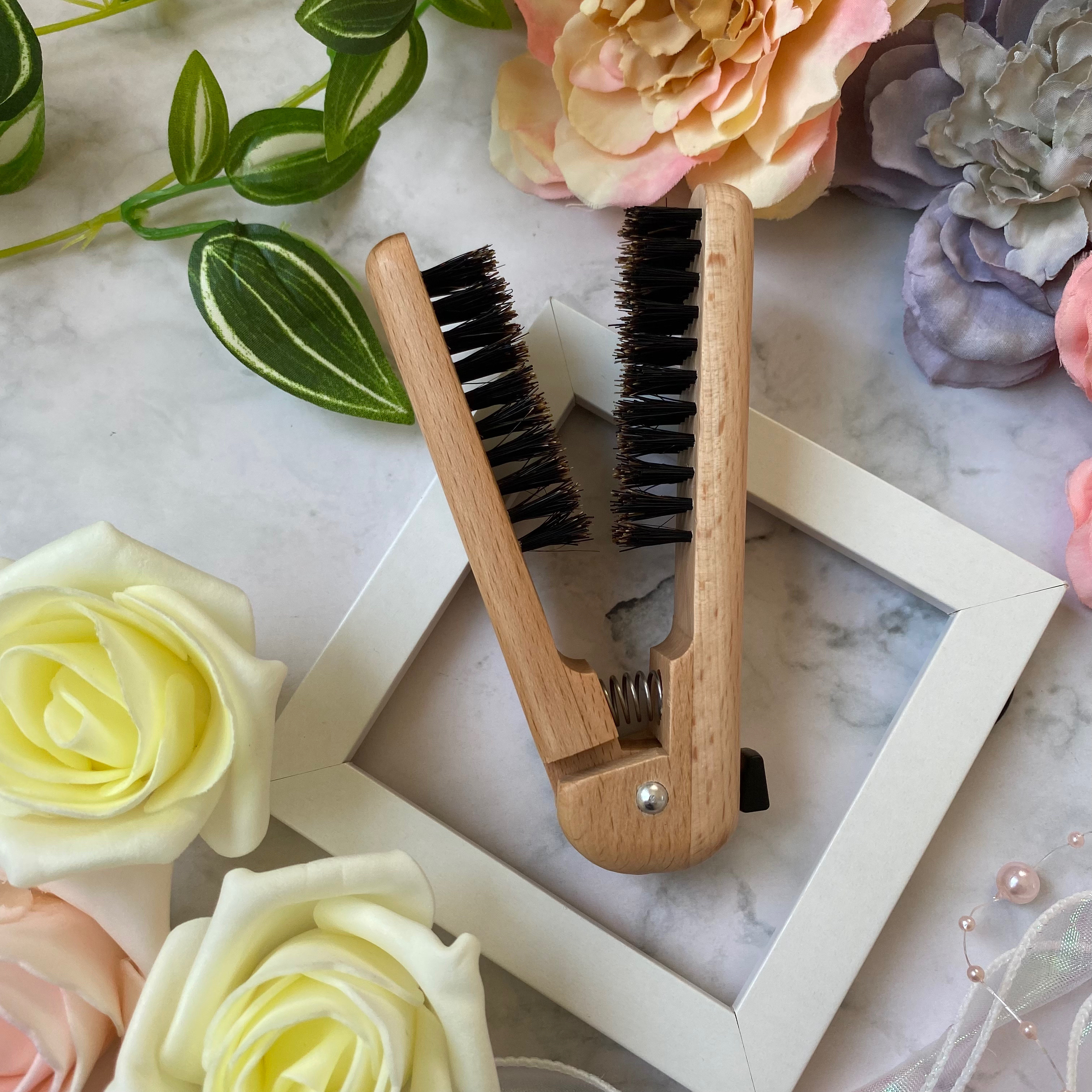 - 髪や頭皮へのなじみがよく、コシがありながらも摩擦の少ない天然豚毛を使用しています。 ご自宅でのケアはもちろん、持ち運びしやすいコンパクトサイズなので、外出先でのお直しにも。 ストッパー付きなので、バッグやポーチの中でもかさばらずに収納できます。