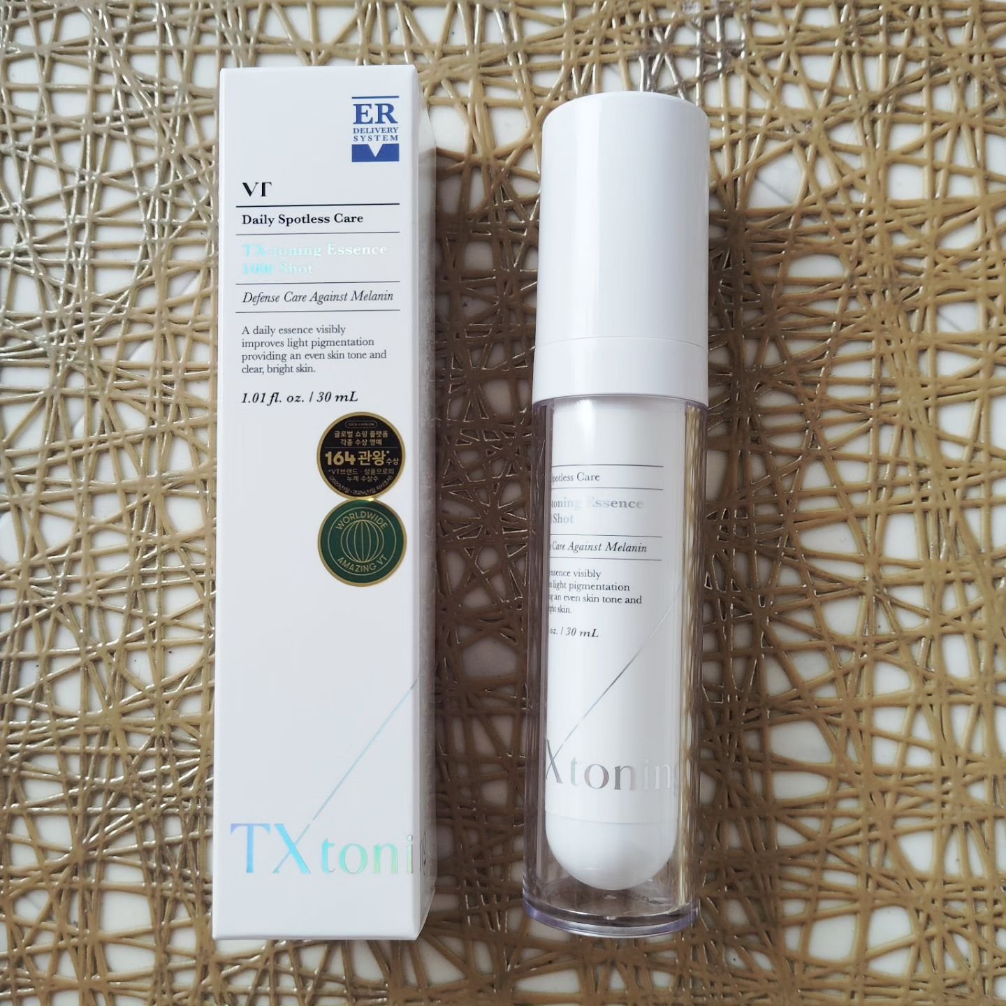TX-トーニングエッセンスはくすみ・シミ・ニキビ跡へ集中的にアプローチ。私は毎日朝晩リールドショット100→TXトーニングエッセンスの順番で使用しました。 赤みが落ち着き、肌が明るく感じられます! 2本目突入します♡ 目立った効果は感じられないけどくすみは感じられなくなりました。