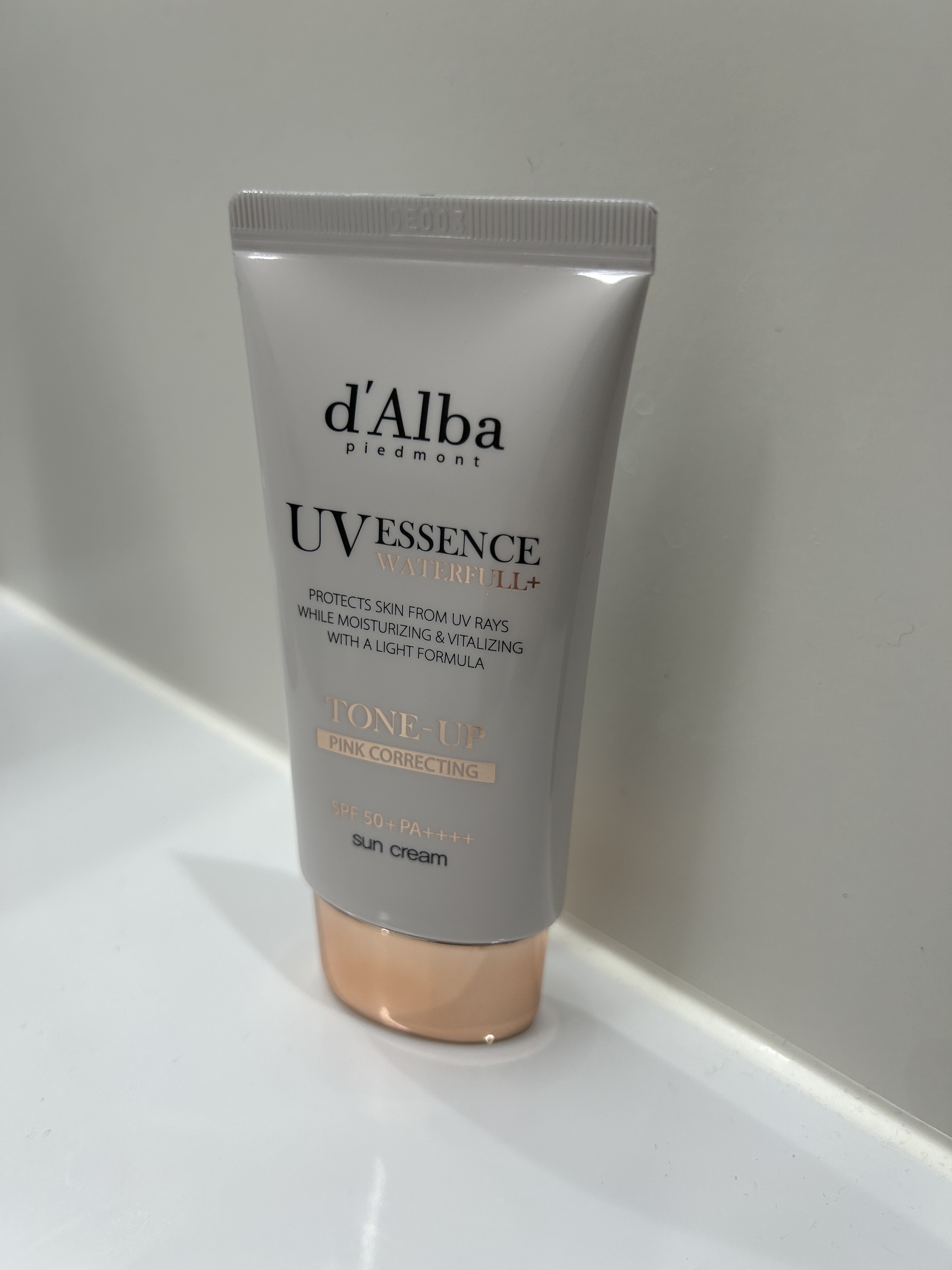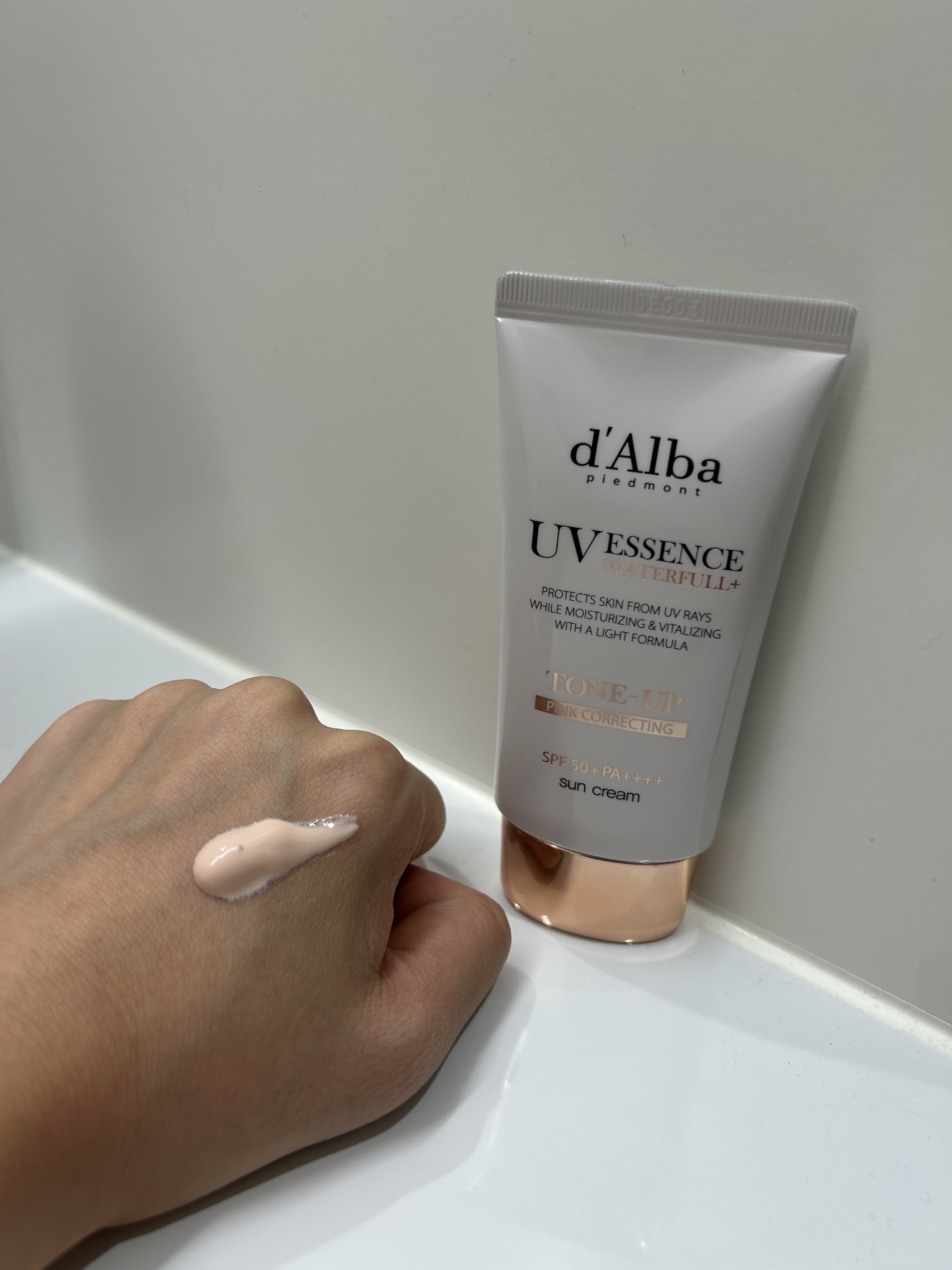 ダルバ ウォータフル トーンアップ サンクリーム パープルはかなりしっかりめにトーンアップしてくれます◎ カラーはブルベ向きの色です! ダルバ ウォータフル トーンアップ サンクリーム ピンクはイエベ、ブルベどちらもOKなので何を買うか悩んでいる方にはこれがおすすめ! ダルバ ウォータフル エッセンス サンクリームは下地としてではなく日焼け止めとして使用します。無色なので首などの全身塗れます!