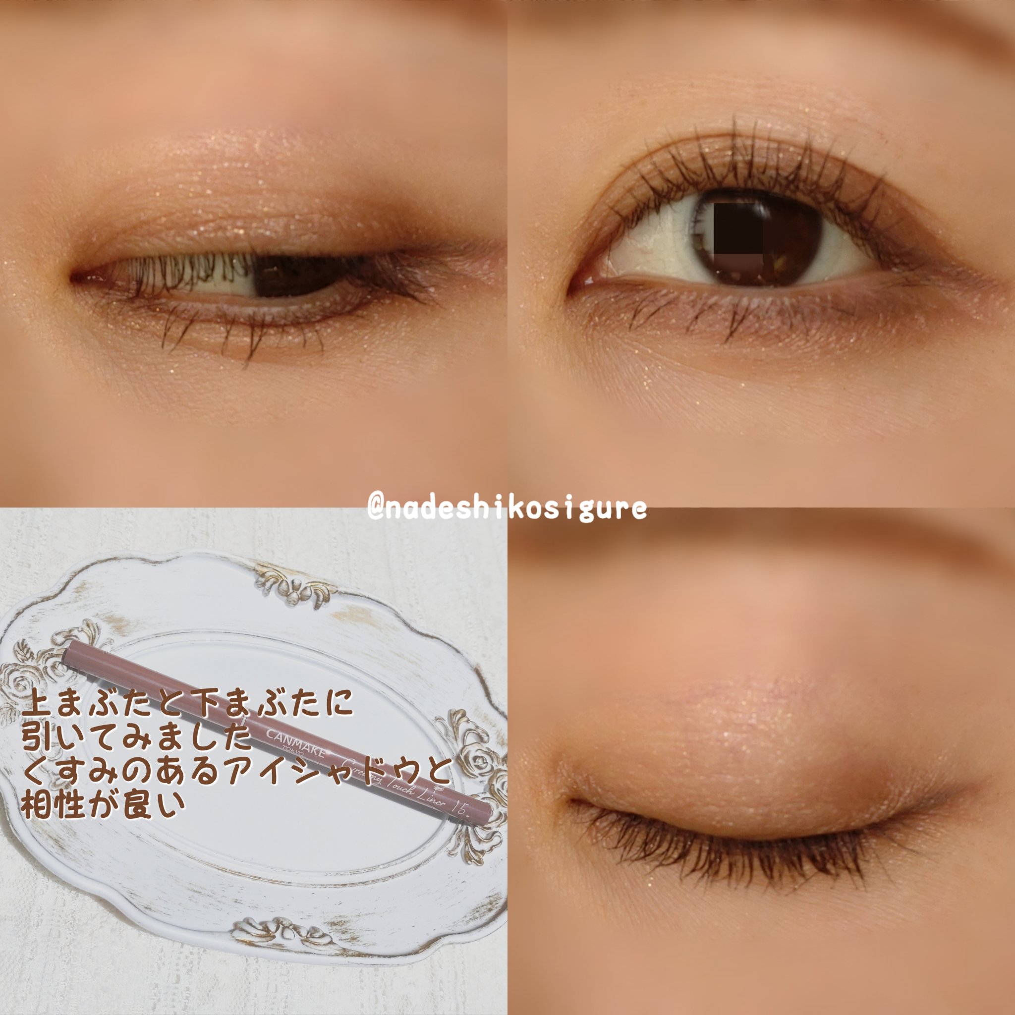 下まぶたにも馴染むミルキーなピンクブラウン。 優しい色なので、下まぶた用に使っています。目立ちすぎず可愛いです♡ 力を入れずスルスルと描けて、 ウォータープルーフ、スマッジプルーフで落ちにくい! プチプラなのに優秀です🫶