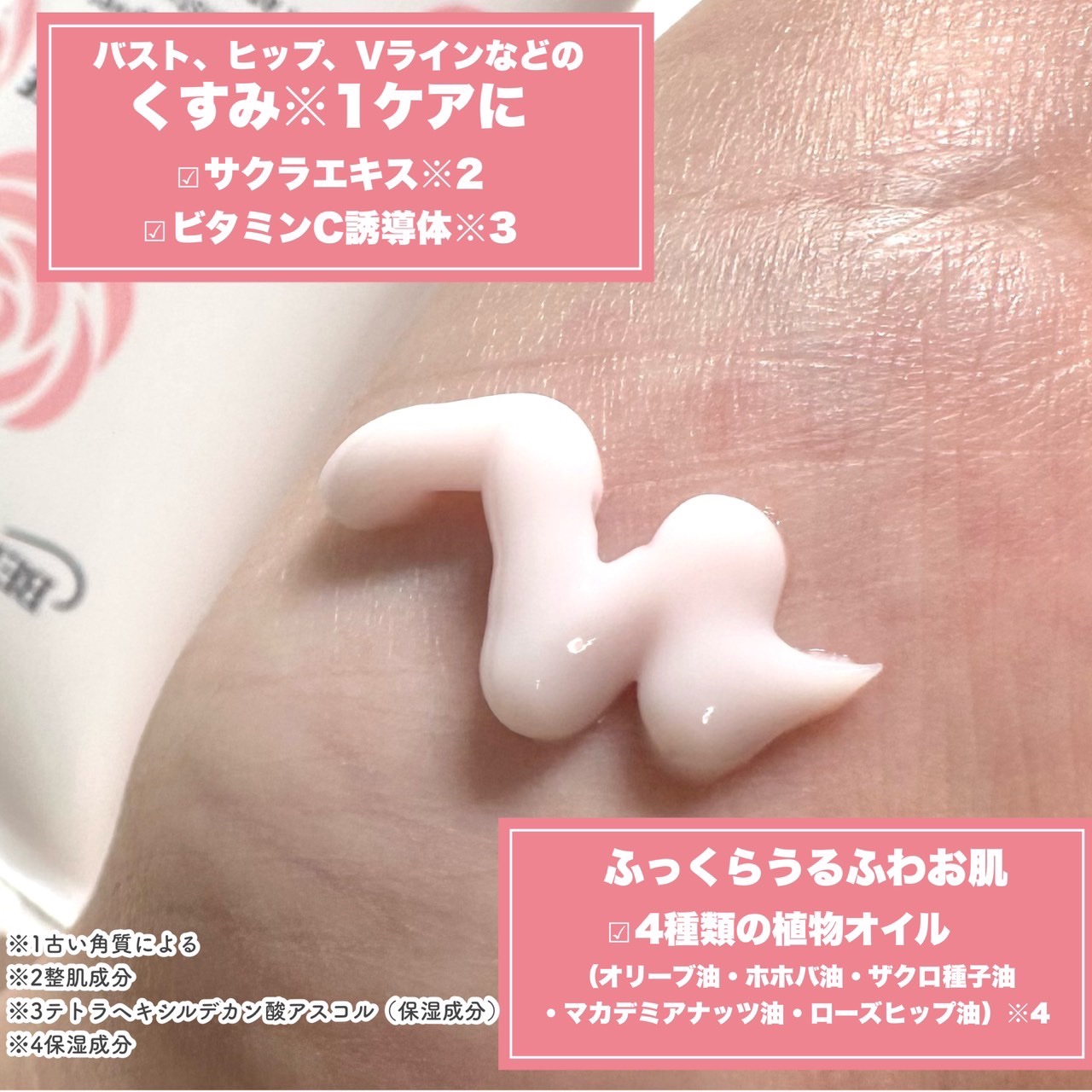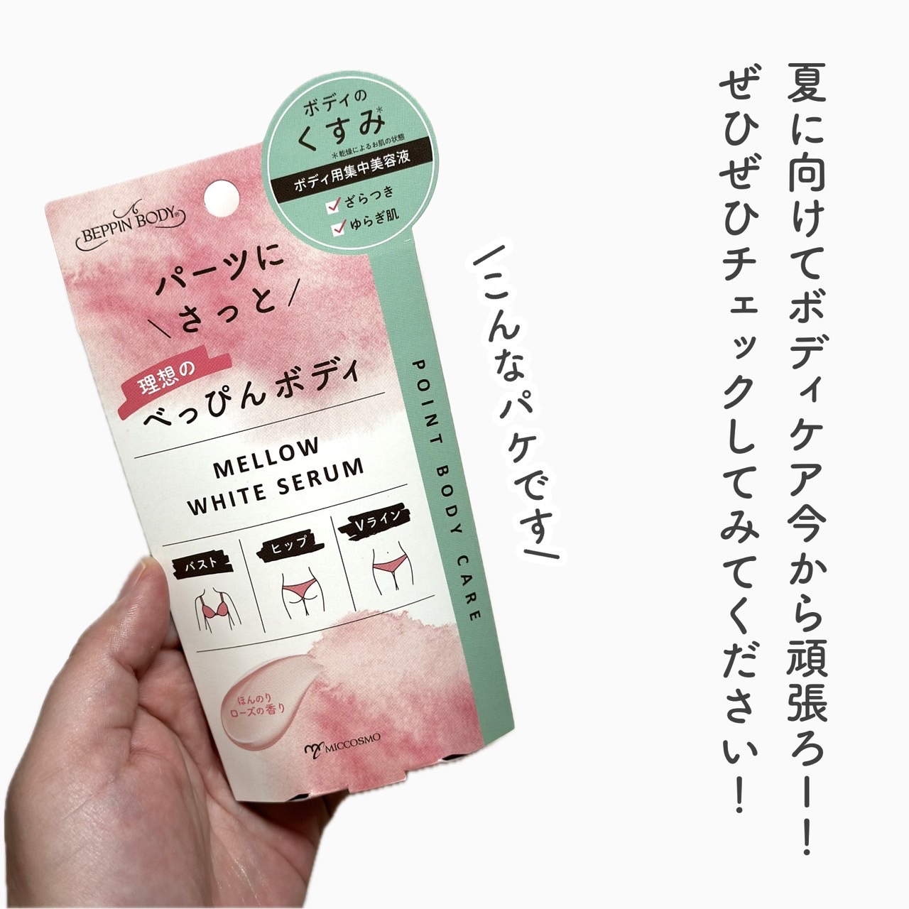 ミックコスモ @miccosmoべっぴんボディメローホワイトセラム30g(約120回分)¥1,320(税込) サクラエキス*1 ビタミンC誘導体*2がボディのくすみにアプローチをしてくれてお肌本来の透明感に…🥺 バストやヒップ、Vラインにも使えるし乾燥しやすく、お肌が荒れやすくなっている除毛後のケアにもおすすめ🙆🏻♀️