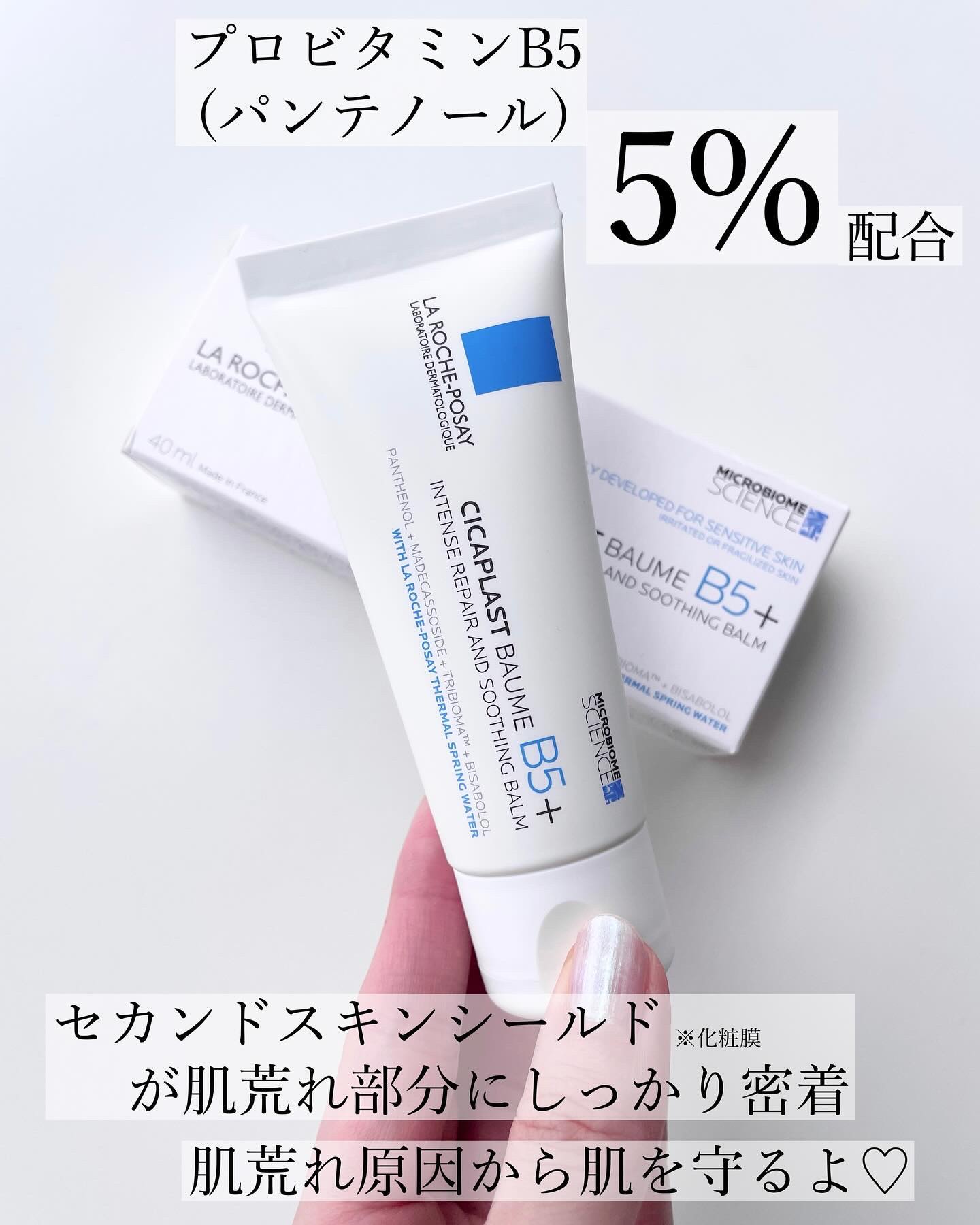 - 塗るだけSOSシールド うるおいの先、肌荒れ予防やダメージケア*1まで。 ①7種の肌悩み*2に。肌ダメージ*1を速攻ケア*3 ②独自のダーマCICAテクノロジー*4採用。 CICA成分*5、パンテノールB5*6、独自成分トリバイオーマ*7配合。 ③長時間*8見えない刺激*1から守るセカンドスキンシールド*9 *1 乾燥による *2カサつき、乾燥による肌荒れ防止、乾燥によるくすみ、キメの乱れ、乾燥ガサガサ肌への保湿、美容トリートメント後(肌管理後)、花粉などの飛散物汚れからの肌保護 *3 お手入れにより *4 ツボクサ葉エキス、α-グルカンオリゴサッカリド、ポリム二アソンチホリア根汁、乳酸桿菌、マンノース(全て整肌成分)、パンテノール(保湿・整肌成分) *5 ツボクサ葉エキス(整肌成分) *6 パンテノール(保湿・整肌成分) *7 α-グルカンオリゴサッカリド、ポリム二アソンチホリア根汁、乳酸桿菌、マンノース(全て整肌成分) *8 ラ ロッシュ ポゼ調べ。個人差があります。 *9 化粧膜