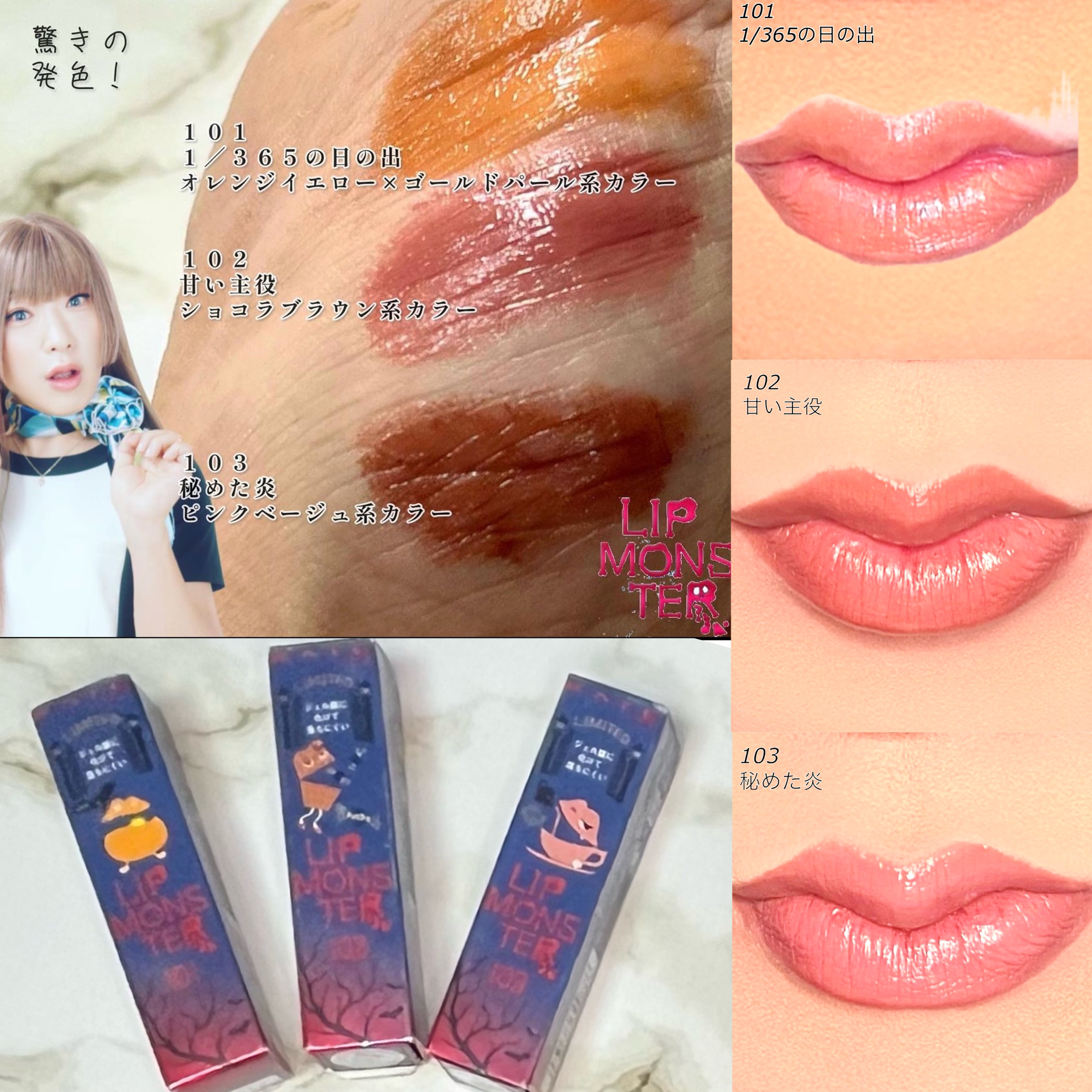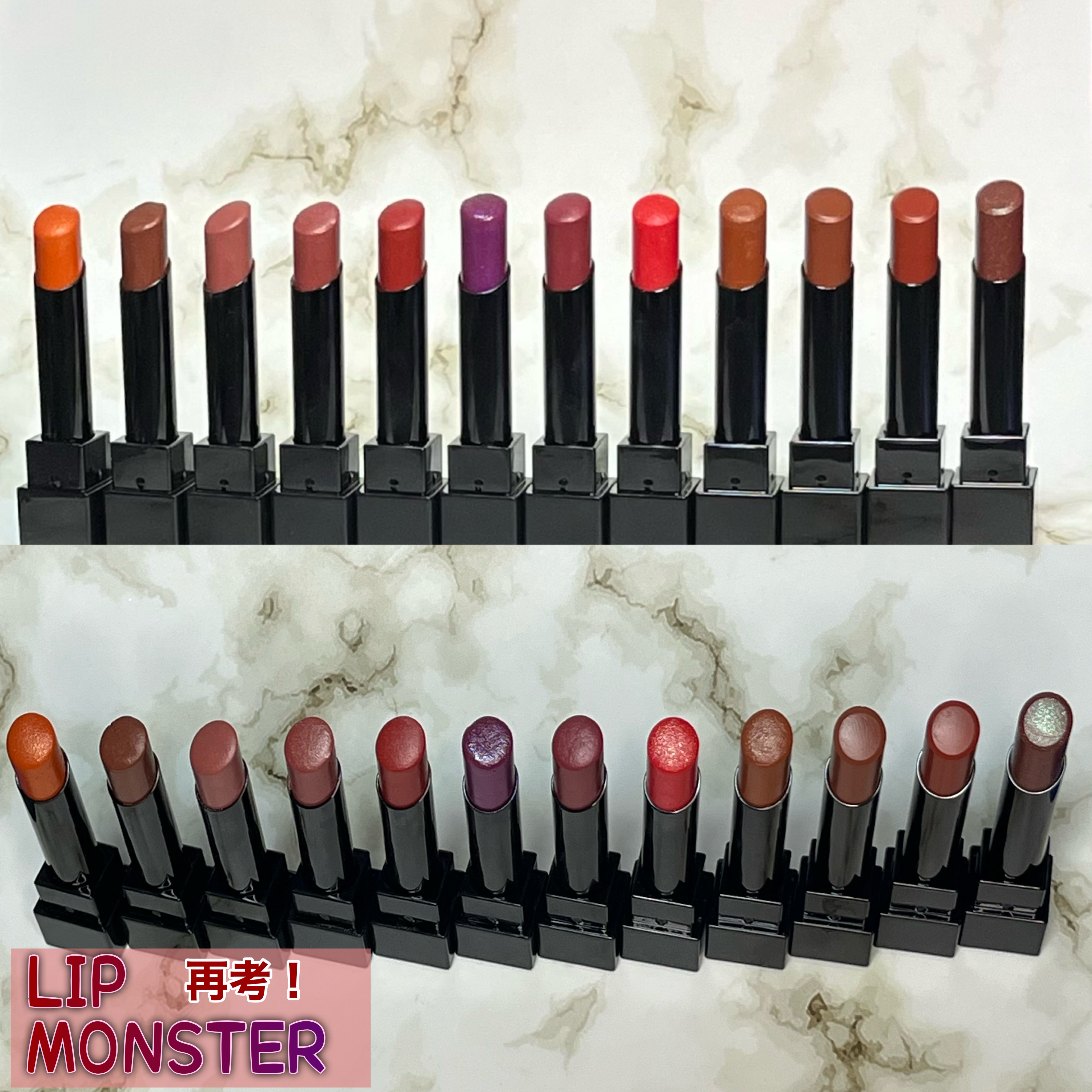 - 落ちにくさも美発色もよくばりたい、つけたての色が長時間持続する人気の口紅リップモンスター。 唇から蒸発する水分を活用して密着ジェル膜に変化する独自技術※で、つけたての色が長時間持続。 高発色&保湿。 ※当社独自の色持ち技術 ■花火のようにまぶしくきらめく 繊細なラメが際立つ限定色 EX-6 ピンクカラー×青ラメ【ロケット花火流星群】 EX-7 オレンジカラー×黄&緑ラメ【100万発の線香花火】 EX-8 レッドカラー×緑ラメ【打ち上げ花火ブランコ】 ■深みレッド系カラーの限定色 EX-9 戦慄の喜笑 (限定色) EX-10 狂気の怒号 (限定色) 【2025クリスマスコフレ】 落ちにくいリップモンスターから、唇の血色感を底上げする ホリデーシーズン限定の熱感ニュアンスベージュ系カラー登場。 EX-11 紅煙宿る贈り物(限定色):ボルドーベージュ系 EX-12 盗まれた1224mの星光(限定色):キャメルベージュ系
