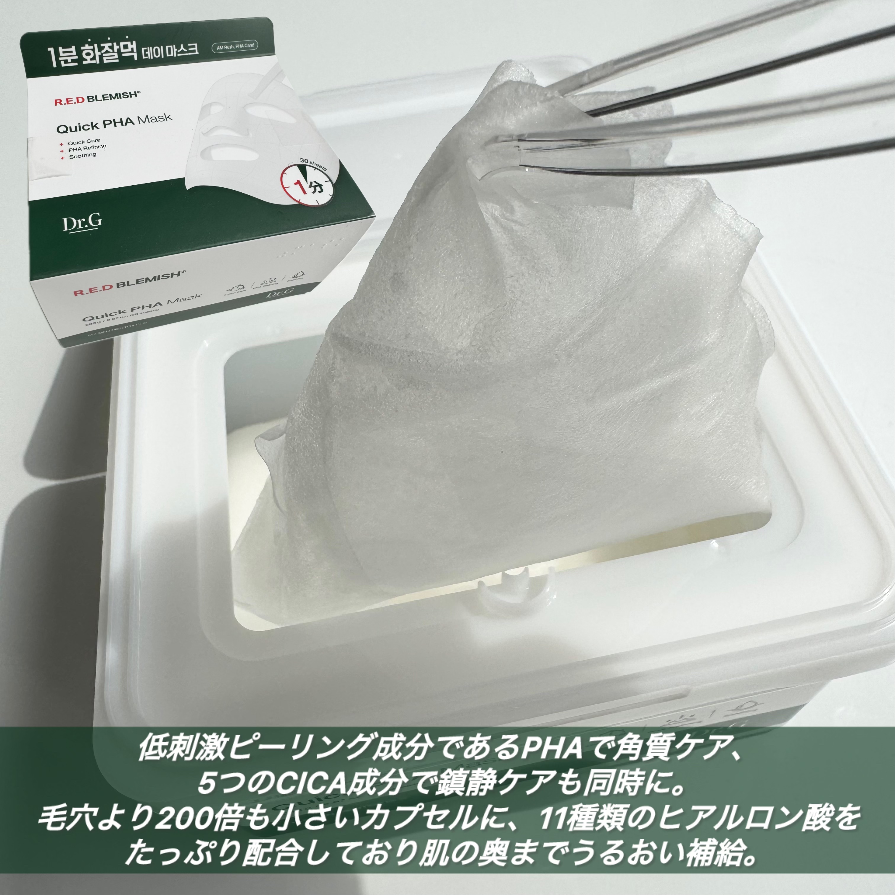 Dr.G様@drg_jp_officialご提供◆レッドブレミッシュクイックPHAシートマスク忙しい朝の味方♡1分で速攻水分補給💙PHAで角質ケアしながら鎮静ケアも同時に☝薄手のマスクで液垂れしないのに高保湿。メイク前に使うとメイク乗りUP✨...