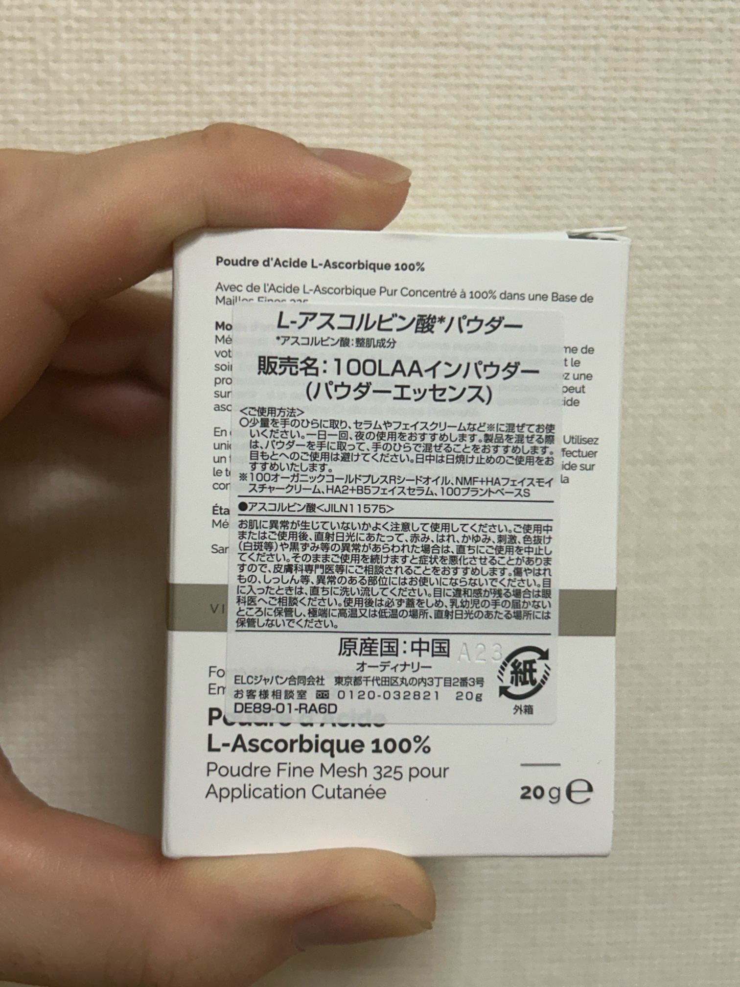 - L-アスコルビン酸 *1 パウダー ( 販売名: 100LAAインパウダー) 肌は日々過酷なストレス (乾燥・ 紫外線など)にさらされています。 ビタミンCとして知られるアスコルビン酸は、肌を保護しながらすこやかな肌を保ちます。 水や空気に触れると、ビタミンCの効果が低下する可能性があるため、オーディナリーはアスコルビン酸をパウダータイプで提供しています。 パウダータイプは、お好みのオーディナリー製品*2に混ぜて、適度にカスタマイズすることも可能です。 ○少量を手のひらに取り、セラムやフェイスクリーム*2などに混ぜてお使いください。 1日1回、夜の使用をおすすめします。 製品を混ぜる際は、パウダーを手に取って、手のひらで混ぜることをおすすめします。 目もとへのご使用は避けてください。日中は日焼け止めのご使用をおすすめいたします。 配合していない成分:エタノール / 香料 / グルテ ン/ シリコン / 水 ほのかに甘く、酸味のある香り *1 整肌成分 *2 100オーガニックコールドプレスRシードオイル、NMF+HAフェイスモイスチャークリーム、HA2+B5フェイスセラム、100プラントベースS