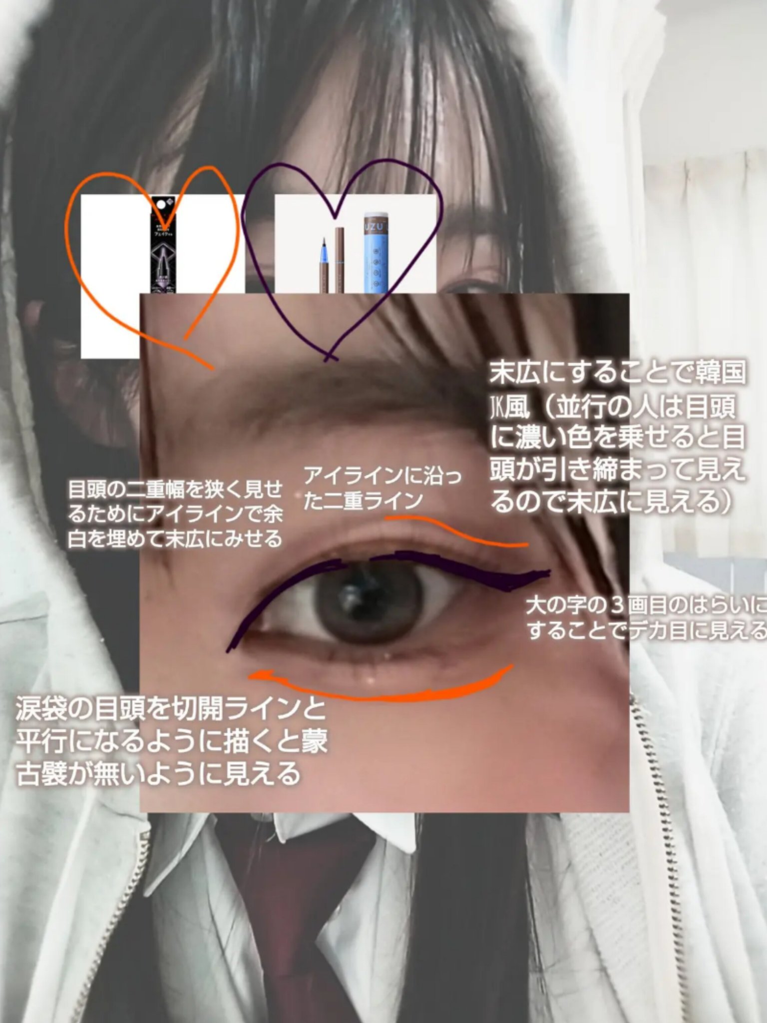 爆盛れした韓国JKメイクを紹介します! カービングアイラッシュカーラーとKOSEのカールキープマジック使って指で束作ってます! 幅広二重が二重が作れないので描いちゃってますw