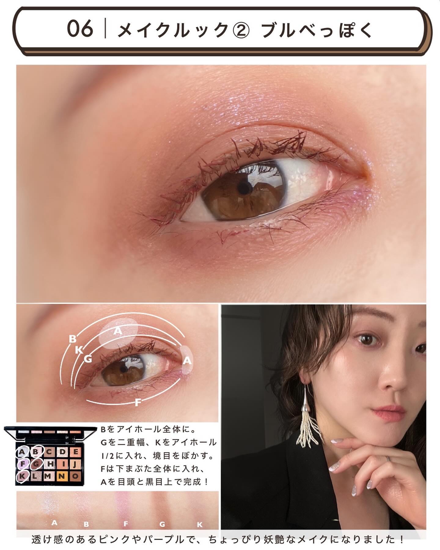 アンプリのベーシック系のカラーの中でもひときわニュートラルな、色味を削いだようなベージュブラウン。 こちらも少し前(7/30)にレビューしているのでそちらもご参考いただけたら🙇♀️ このパレットはベーシックでありながらトレンド感もあるところがお気に入りポイントでして、ちょっとセピアを帯びたようなくすみ感がなんとも言えずお洒落な雰囲気を醸し出してくれます。 というのは全体的に肌に馴染むようなヌーディカラーで構成されたすごくナチュラルなシェードなんだけど、シルバー系のパールが潜んでいたり、少しくすみ感があったりと、甘さを取り除いてクールな仕上がりになるところがめちゃくちゃかっこいいのよ。 ダイヤモンドを彷彿とさせるような大粒のラメの煌めきがたまらなく美しいアイカラーです。 このパレットの好きなところは、マットが主役なところ。絶妙にニュアンスの異なる3色のマットでグラデーションしやすいのがミソです。 パールカラーの入れ方次第で表情が変わるパレットだと思う。
