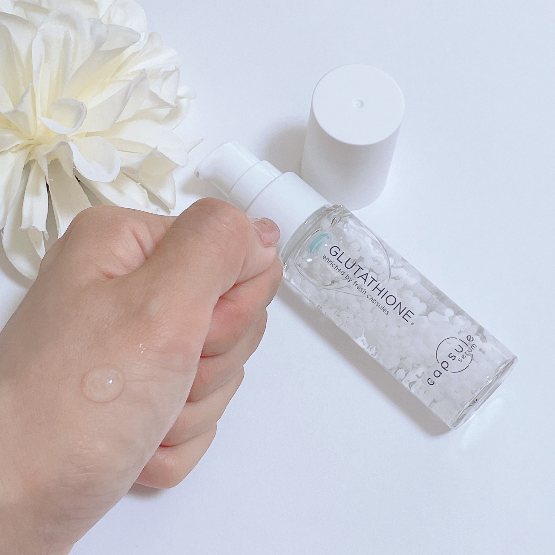 「はじけてうまれる、生美容液。」のカプセルセラムシリーズから、注目のグルタチオンが配合されたNEWアイテム💁♀️✨️ 韓国の美容業界で盛り上がり、白玉肌で話題になっている注目のグルタチオンを厳選配合! ホワイトのカプセルが沢山入った美容液でポンプを式で押すとカプセルがはじけて軽く混ざりあって出ます◎