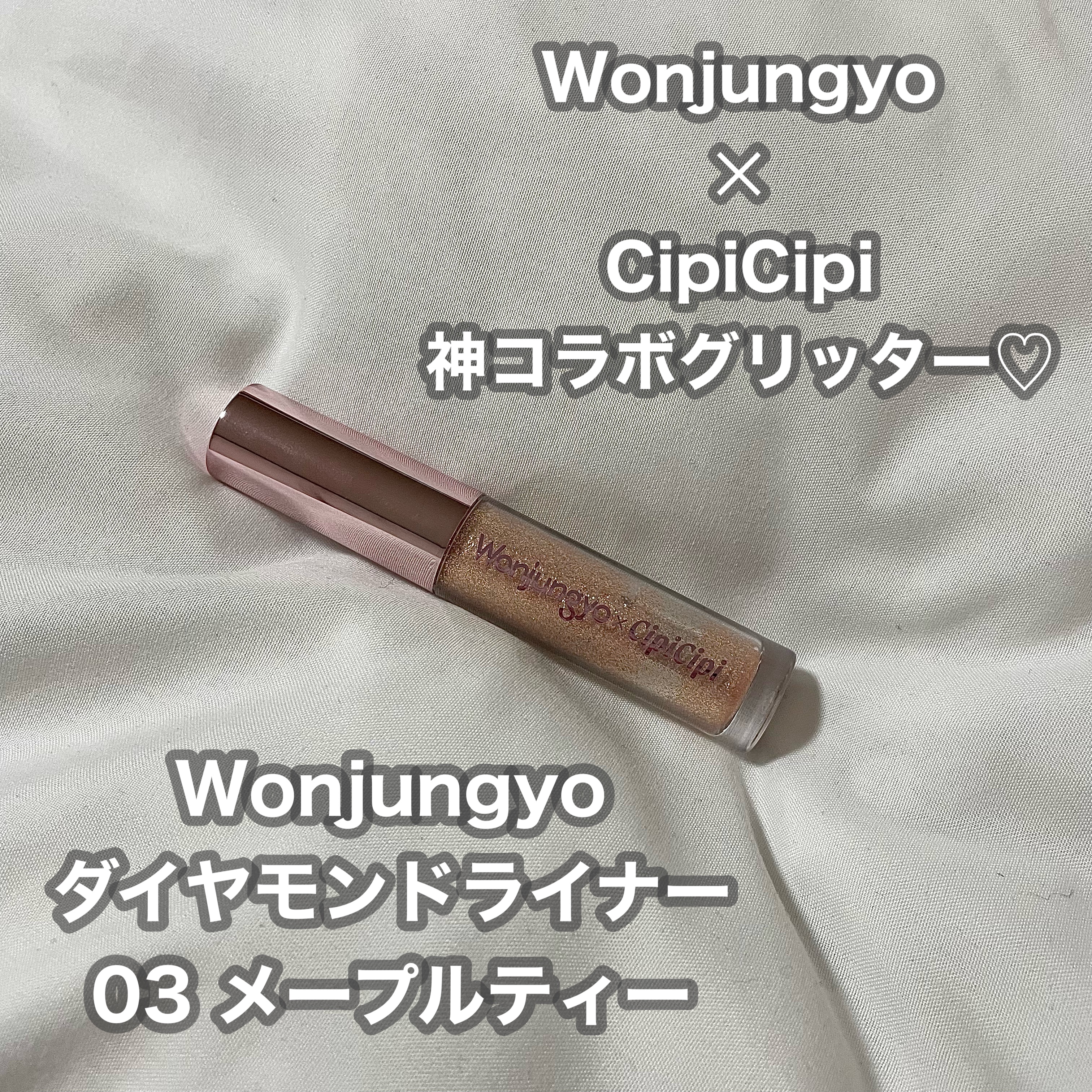 ✨使ってみた感想Wonjungyo(ウォンジョンヨ)とCipiCipi(シピシピ)のコラボアイテム、ダイヤモンドライナーの「03メープルティー」。これが本当に可愛くて、手放せないアイテムになりました!輝きダイヤモンドのようなキラッキラな輝きで...