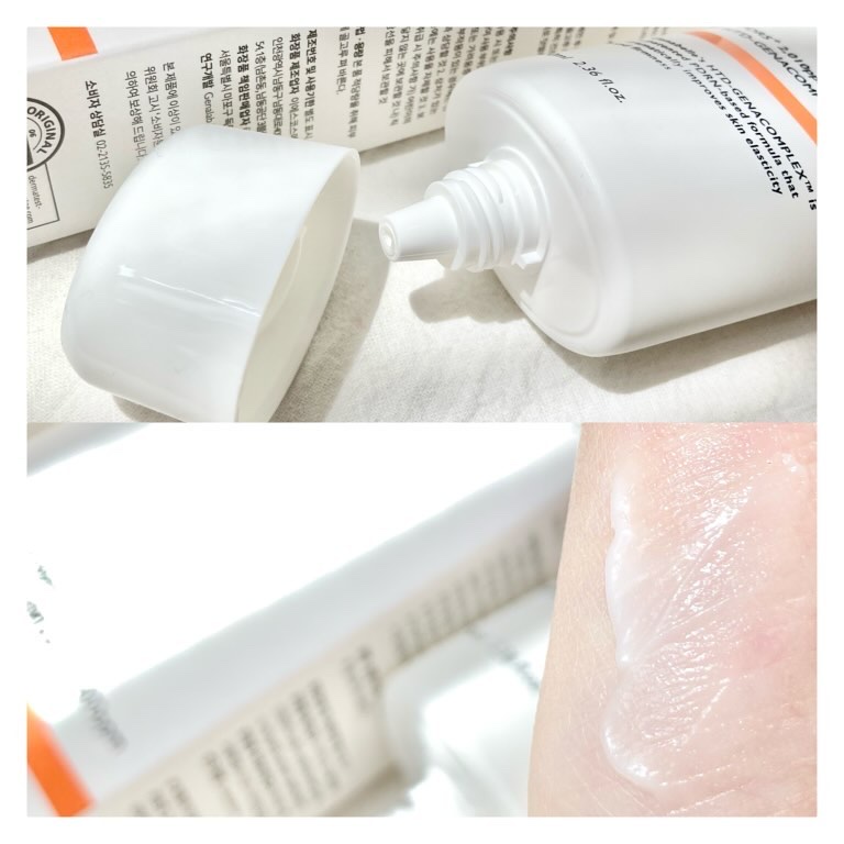 ジェルタイプで、緩めのテクスチャです。伸びが良く馴染ませやすかったです。 モロモロしない、ベタつき控えめ、乾燥そこまでしない、無香料、色がほぼ付かない、と、日焼け止めとしてかなり好感触でした。 モロモロせずムラなく塗れる ほぼトーンアップしない ほんのり赤みが抑えられる 石鹸で落とせる