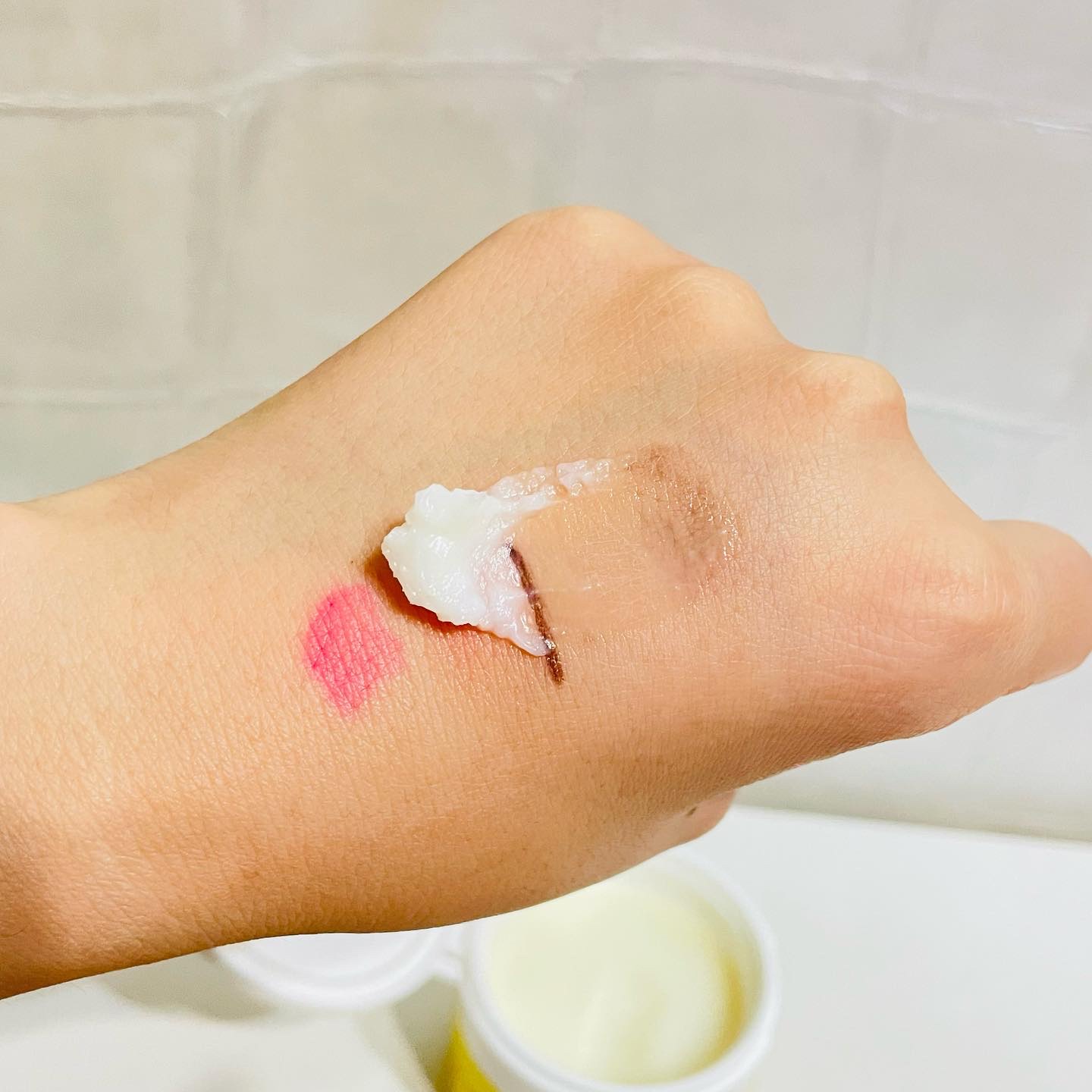 初めは乳白色のシャーベット状のバームですが、メイクと馴染ませると、じゅわっととろけて、なめらかなクリームに変化します。 なめらかなクリームだから、するするのびて摩擦なし♪ 柑橘系のすっきりとした爽やかなシトラスの香りで癒されます🍋