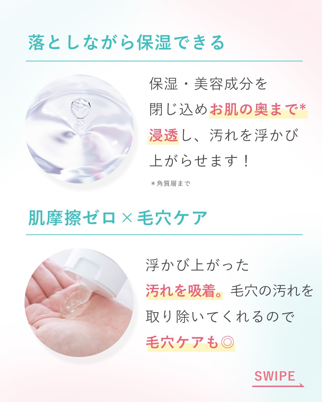 | 潤いの秘密はハイドロジェル。毛穴の汚れがすっきりと取れるのに突っ張らない優しい洗い上がり | 詳細を見る | |