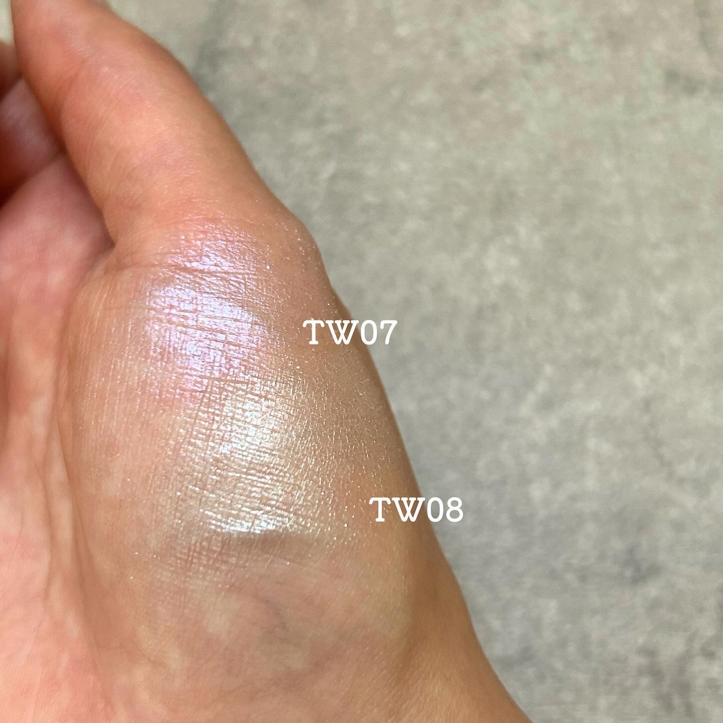 かわいくて愛用してます! 🤍TW07 ホワイト系・・・ピンク〜紫の偏光パール とくに07がお気に入り! 青み系のリップやチークと合わせて初夏に活躍した☺︎ 08はホタル見に行く時につけていったな🪲