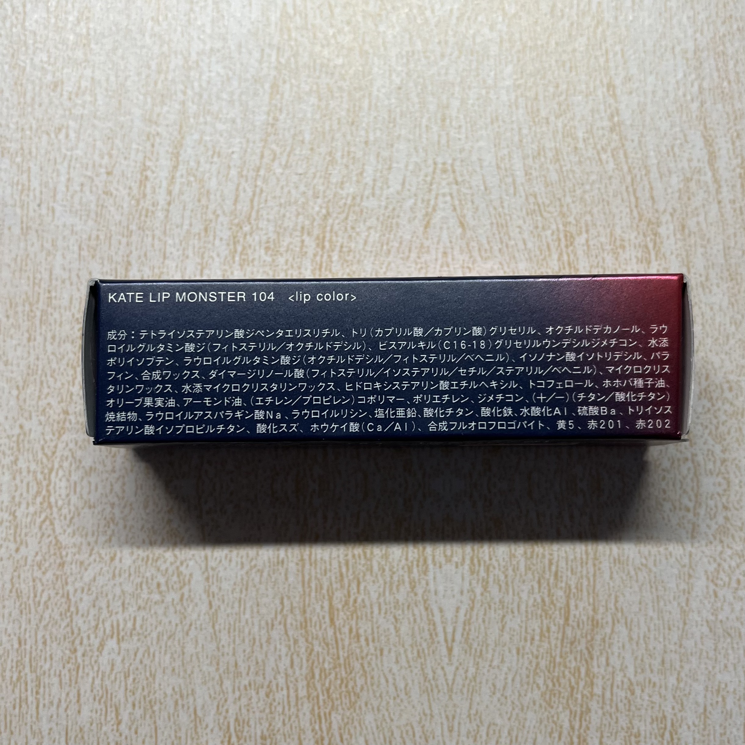 - <01 欲望の塊> テトライソステアリン酸ジペンタエリスリチル、トリ(カプリル酸/カプリン酸)グリセリル、オクチルドデカノール、ラウロイルグルタミン酸ジ(フィトステリル/オクチルドデシル)、ビスアルキル(C16-18)グリセリルウンデシルジメチコン、イソノナン酸イソトリデシル、水添ポリイソブテン、ラウロイルグルタミン酸ジ(オクチルドデシル/フィトステリル/ベヘニル)、パラフィン、合成ワックス、ダイマージリノール酸(フィトステリル/イソステアリル/セチル/ステアリル/ベヘニル)、マイクロクリスタリンワックス、水添マイクロクリスタリンワックス、ヒドロキシステアリン酸エチルヘキシル、トコフェロール、ホホバ種子油、オリーブ果実油、アーモンド油、(エチレン/プロピレン)コポリマー、ポリエチレン、ジメチコン、(+/-)(チタン/酸化チタン)焼結物、マイカ、ラウロイルアスパラギン酸Na、ラウロイルリシン、塩化亜鉛、酸化チタン、酸化鉄、水酸化Al、硫酸Ba、トリイソステアリン酸イソプロピルチタン、酸化スズ、ホウケイ酸(Ca/Al)、合成フルオロフロゴパイト、黄4、黄5、赤104(1)、赤201、赤202 <02 ピンクバナナ> テトライソステアリン酸ジペンタエリスリチル、トリ(カプリル酸/カプリン酸)グリセリル、オクチルドデカノール、ラウロイルグルタミン酸ジ(フィトステリル/オクチルドデシル)、ビスアルキル(C16-18)グリセリルウンデシルジメチコン、イソノナン酸イソトリデシル、水添ポリイソブテン、ラウロイルグルタミン酸ジ(オクチルドデシル/フィトステリル/ベヘニル)、パラフィン、合成ワックス、ダイマージリノール酸(フィトステリル/イソステアリル/セチル/ステアリル/ベヘニル)、マイクロクリスタリンワックス、水添マイクロクリスタリンワックス、ヒドロキシステアリン酸エチルヘキシル、トコフェロール、ホホバ種子油、オリーブ果実油、アーモンド油、(エチレン/プロピレン)コポリマー、ポリエチレン、ジメチコン、(+/-)(チタン/酸化チタン)焼結物、マイカ、ラウロイルアスパラギン酸Na、ラウロイルリシン、塩化亜鉛、酸化チタン、酸化鉄、水酸化Al、硫酸Ba、トリイソステアリン酸イソプロピルチタン、酸化スズ、ホウケイ酸(Ca/Al)、合成フルオロフロゴパイト、黄4、黄5、赤104(1)、赤201、赤202 <03 陽炎> テトライソステアリン酸ジペンタエリスリチル、トリ(カプリル酸/カプリン酸)グリセリル、オクチルドデカノール、ラウロイルグルタミン酸ジ(フィトステリル/オクチルドデシル)、ビスアルキル(C16-18)グリセリルウンデシルジメチコン、イソノナン酸イソトリデシル、水添ポリイソブテン、ラウロイルグルタミン酸ジ(オクチルドデシル/フィトステリル/ベヘニル)、パラフィン、合成ワックス、ダイマージリノール酸(フィトステリル/イソステアリル/セチル/ステアリル/ベヘニル)、マイクロクリスタリンワックス、水添マイクロクリスタリンワックス、ヒドロキシステアリン酸エチルヘキシル、トコフェロール、ホホバ種子油、オリーブ果実油、アーモンド油、(エチレン/プロピレン)コポリマー、ポリエチレン、ジメチコン、(+/-)(チタン/酸化チタン)焼結物、マイカ、ラウロイルアスパラギン酸Na、ラウロイルリシン、塩化亜鉛、酸化チタン、酸化鉄、水酸化Al、硫酸Ba、トリイソステアリン酸イソプロピルチタン、酸化スズ、ホウケイ酸(Ca/Al)、合成フルオロフロゴパイト、黄4、黄5、赤104(1)、赤201、赤202 <04 パンプキンワイン> テトライソステアリン酸ジペンタエリスリチル、トリ(カプリル酸/カプリン酸)グリセリル、オクチルドデカノール、ラウロイルグルタミン酸ジ(フィトステリル/オクチルドデシル)、ビスアルキル(C16-18)グリセリルウンデシルジメチコン、イソノナン酸イソトリデシル、水添ポリイソブテン、ラウロイルグルタミン酸ジ(オクチルドデシル/フィトステリル/ベヘニル)、パラフィン、合成ワックス、ダイマージリノール酸(フィトステリル/イソステアリル/セチル/ステアリル/ベヘニル)、マイクロクリスタリンワックス、水添マイクロクリスタリンワックス、ヒドロキシステアリン酸エチルヘキシル、トコフェロール、ホホバ種子油、オリーブ果実油、アーモンド油、(エチレン/プロピレン)コポリマー、ポリエチレン、ジメチコン、(+/-)(チタン/酸化チタン)焼結物、マイカ、ラウロイルアスパラギン酸Na、ラウロイルリシン、塩化亜鉛、酸化チタン、酸化鉄、水酸化Al、硫酸Ba、トリイソステアリン酸イソプロピルチタン、酸化スズ、ホウケイ酸(Ca/Al)、合成フルオロフロゴパイト、黄4、黄5、赤104(1)、赤201、赤202 <05 ダークフィグ> テトライソステアリン酸ジペンタエリスリチル、トリ(カプリル酸/カプリン酸)グリセリル、オクチルドデカノール、ラウロイルグルタミン酸ジ(フィトステリル/オクチルドデシル)、ビスアルキル(C16-18)グリセリルウンデシルジメチコン、イソノナン酸イソトリデシル、水添ポリイソブテン、ラウロイルグルタミン酸ジ(オクチルドデシル/フィトステリル/ベヘニル)、