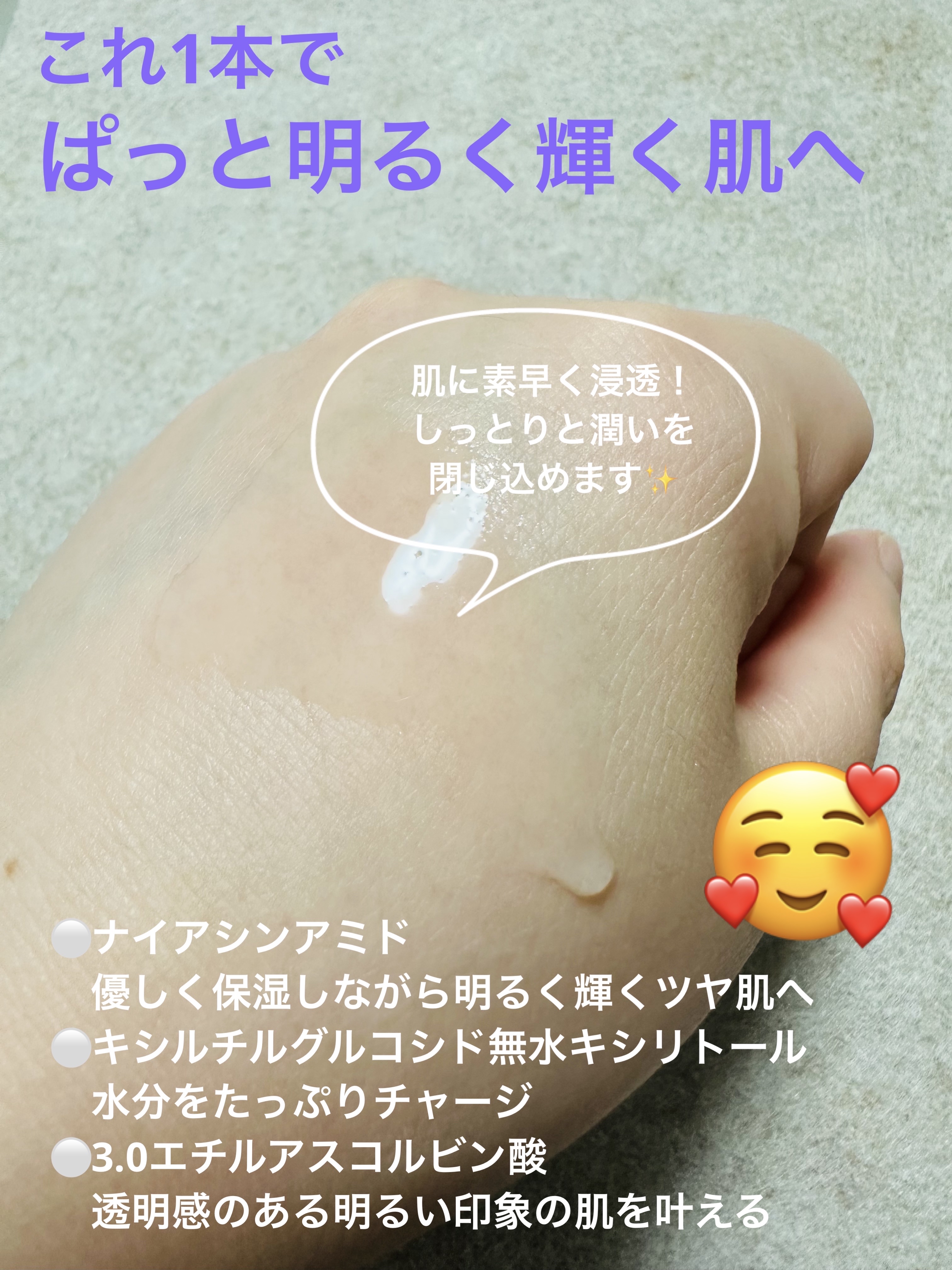 かなり明るいオレンジクリーム🍊で、ほんのり柑橘系の香りで伸びが良くベタつきがありません! みずみずしいテクスチャーで敏感肌の私でもピリピリすることなく使用できるので、おすすめです! 30ml