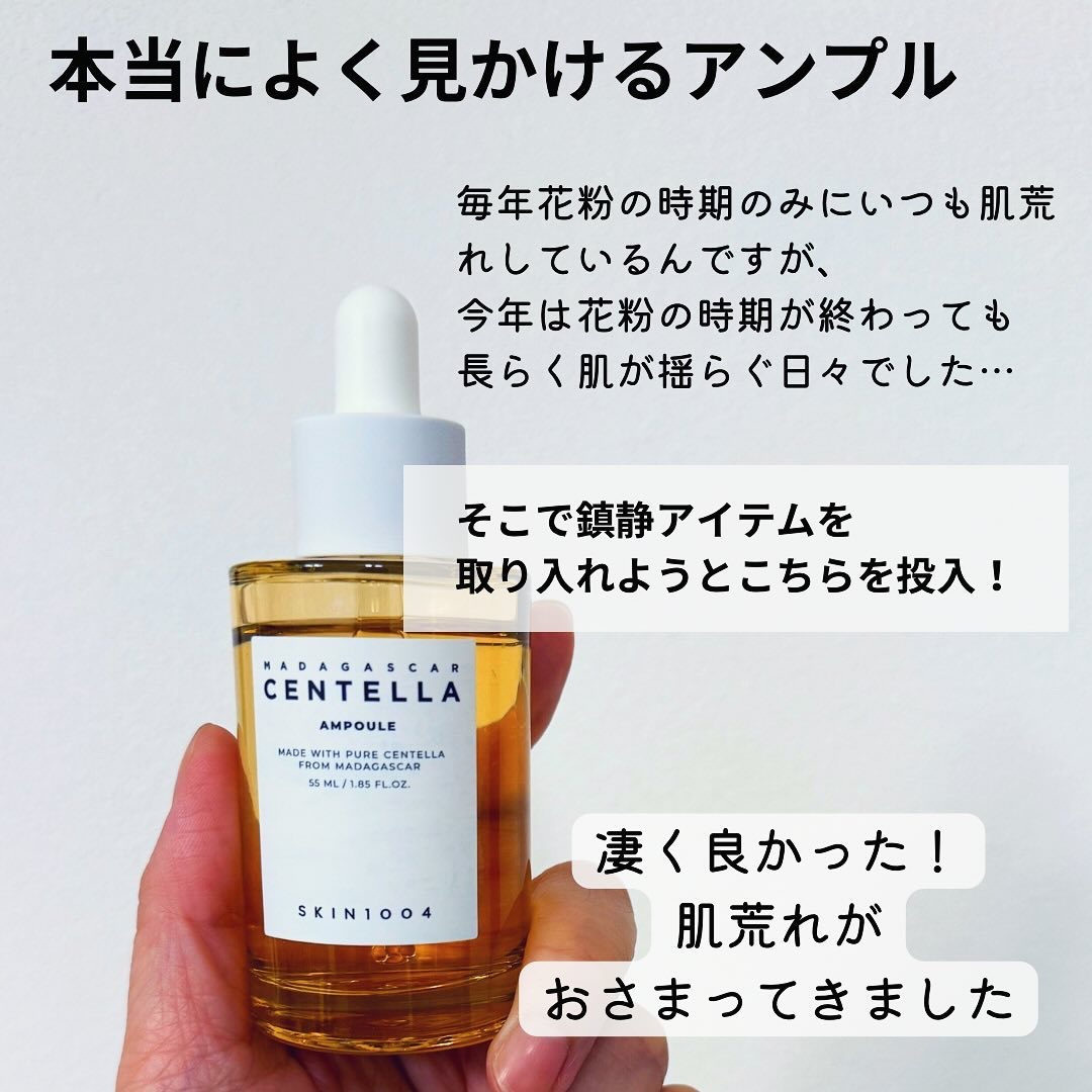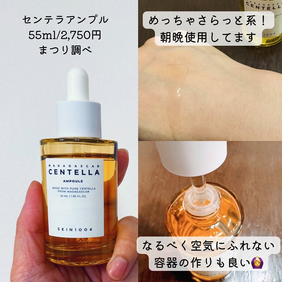 年中愛用し続けているセンテラアンプル🤍 乾燥が気になる時から肌荒れの時にも使いやすく、1軍スキンケアとして頼りにしています🌱 まるで水のようなサラッとしたテクスチャー💧 スーッと肌になじんでいきます👌🏻肌なじみが良すぎて驚くほど✨ マダガスカル産ツボクサエキス(保湿成分)100%配合されているそう🌿 鎮静ケアとして頼りになる成分なんだそう🥀