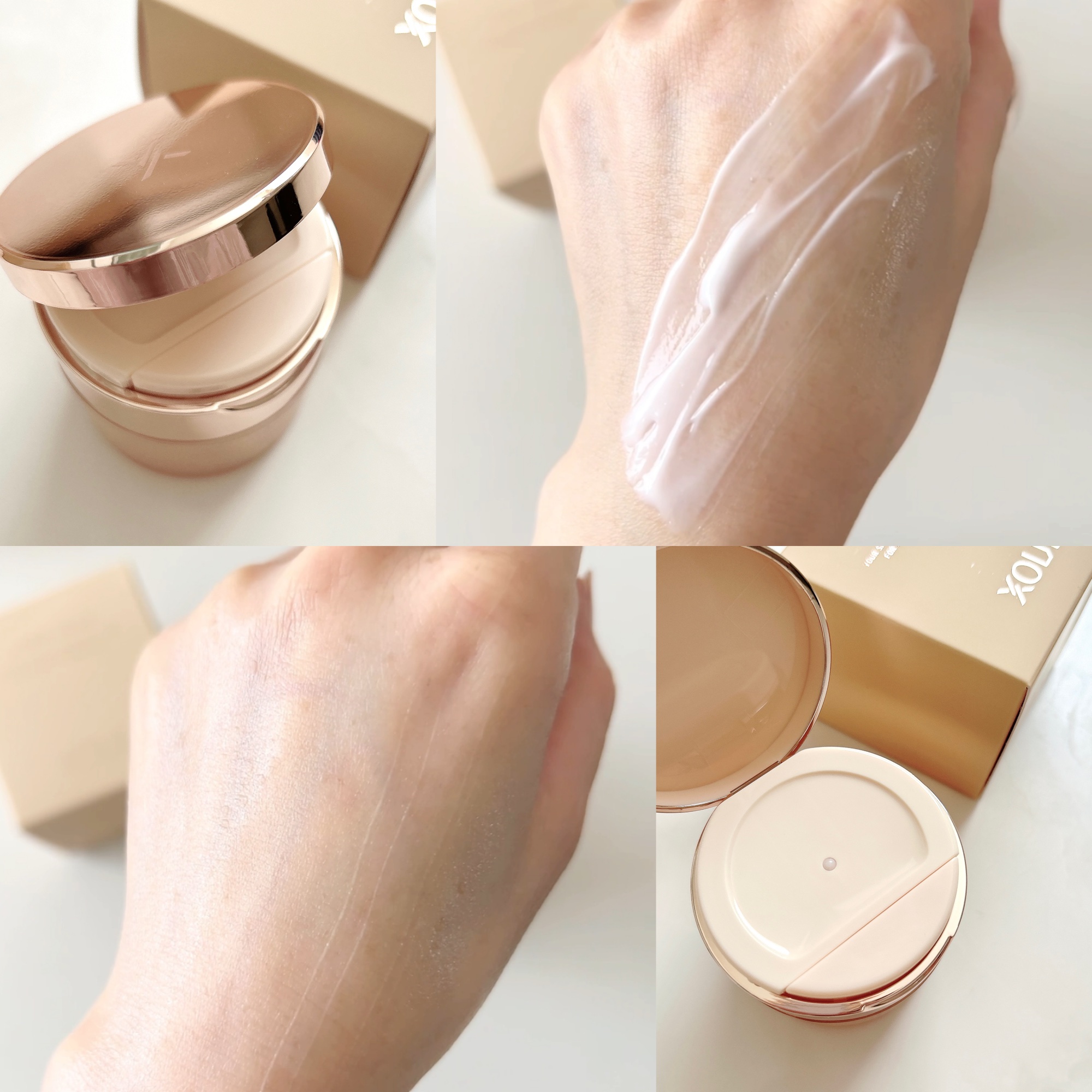 私もずっと欲しいなと思いつつ、なかなか買えずにいました😭 みずみずしく伸びの良いテクスチャー グリセリンやミネラルオイルが配合されていて、しっとりと保湿力を実感するつけ心地です✨ 上からファンデーションを重ねることで、けっこうしっかり目のパールが程よく落ち着き、お肌が内側から発光しているかのような、元からみずみずしい素肌のように仕上がりるのが人気の理由だし、私も大好きなポイントです♡ この大きな特徴が最大の良いところでもある反面、特徴的がゆえに合わない方もいるのかなと。。。 なのでベースにSPF高めの別の下地を塗り 頬全面やCライン、顎先、お鼻は鼻筋だけ、おでこも高い部分にだけグロウライザーを重ねるとメリハリのある艶肌になっておすすめです✨ 少しひと手間ですが、艶感を上手く使いこなせば夏場以外は一軍で使えるなと思ってます♫