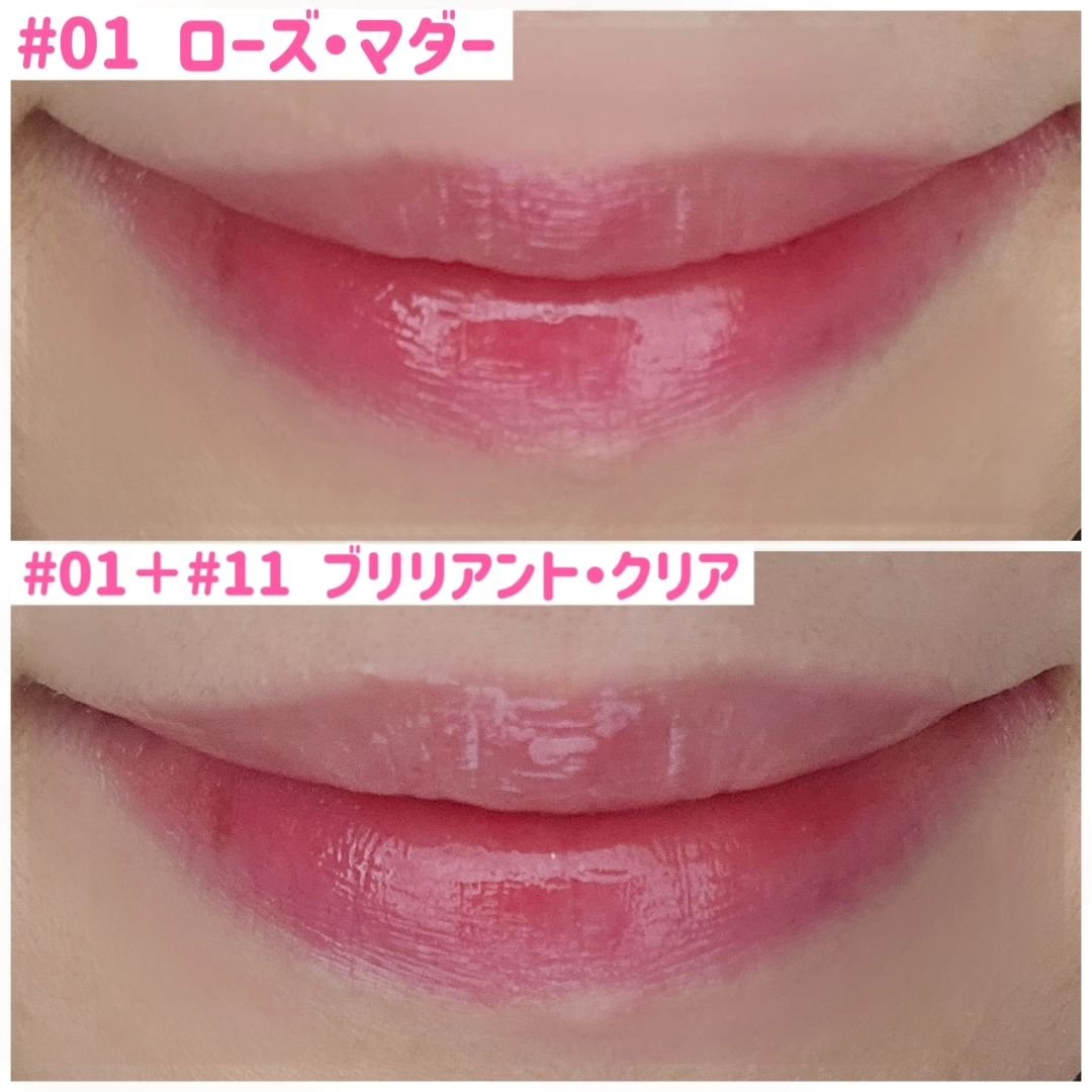 無花果タルトのような粘膜カラーに赤ワインを1滴たらしたような粘膜レッド❤ ピンクがかった透明で多色のラメがチラチラ光ってひたすらに可愛い✨ 保湿成分とオイルをバランスよく配合しているから、ベタつかずさらっとしたテクスチャーなの!