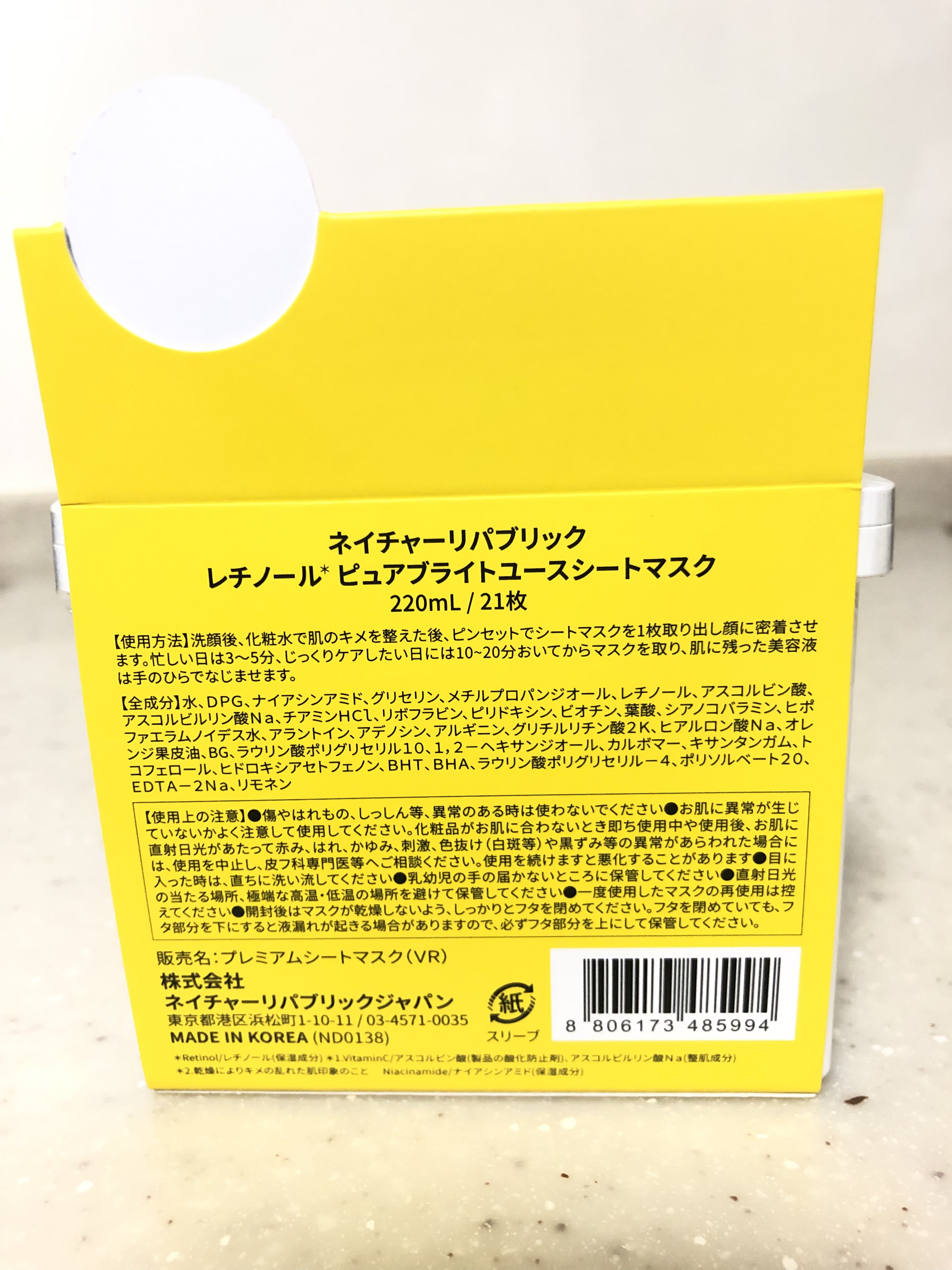 商品詳細情報ネイチャーリパブリック キューブマスク レチノール