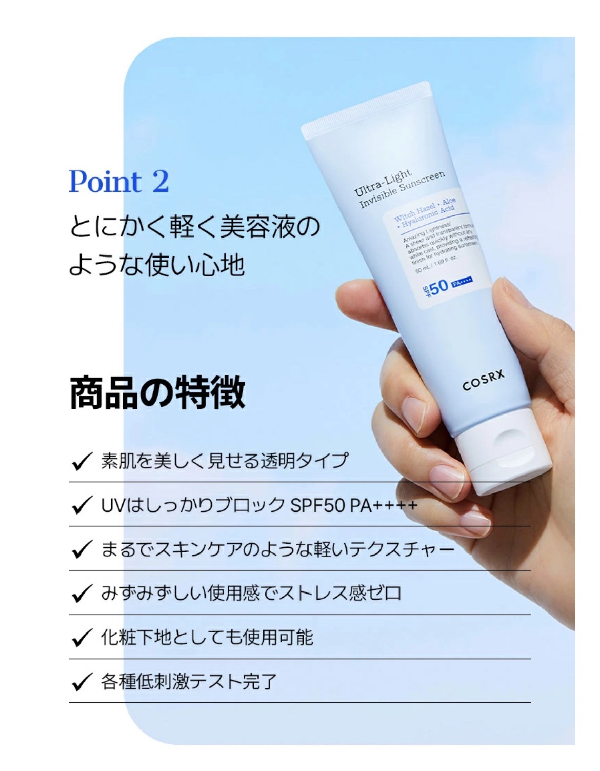 商品詳細情報COSRX ウルトラライト透明UVクリーム