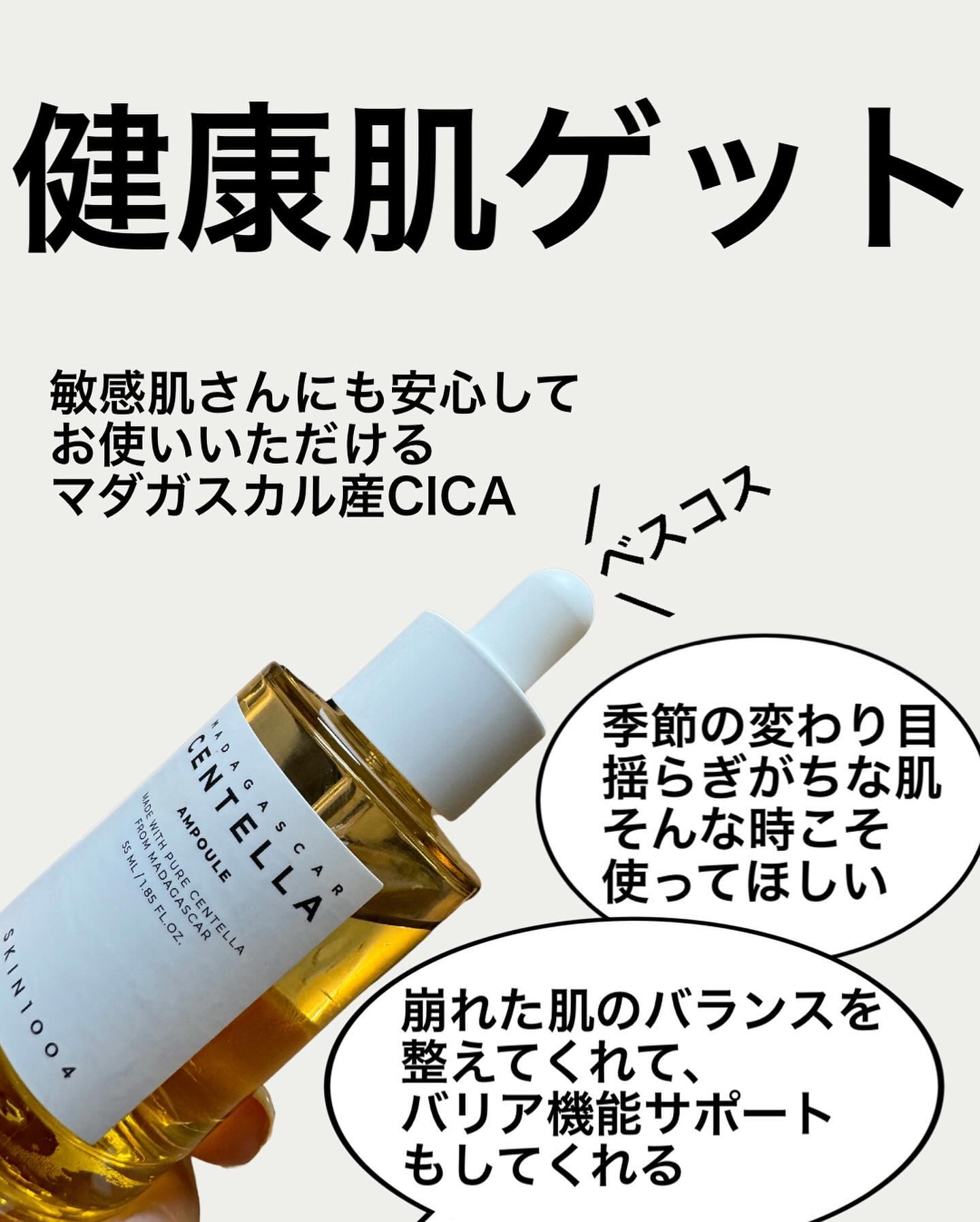 ベース美容液としてぴったり❣️冬でもセンテラアンプル✨ 高濃縮スキンケア前に使用すると肌保護膜をつくってくれるお守りようなアンプル😊 ツボクサエキス配合で鎮静*効果抜群みたい✨ ブースターとしてもセラムとしても使えて私はその時使いたいセラムで使う順番をかえてるよ😊 かなりゆらぎにくくなった気がする✨ 私にとっては定番セラム🥹