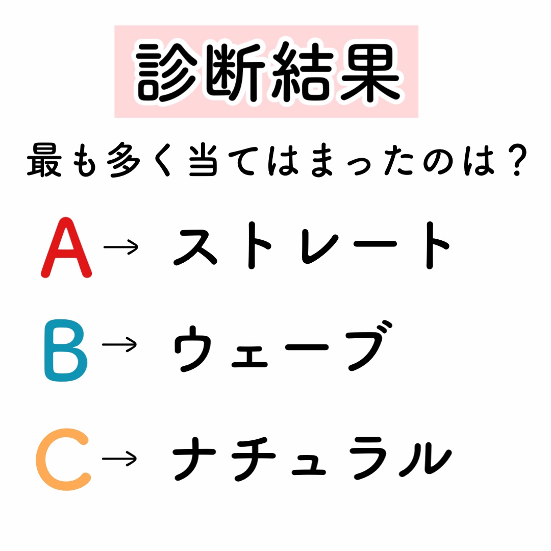 ストレートだった! この間お洋服屋さん行ったときはナチュラルよりのストレートって言われた~ ウェーブ要素はないらしい笑笑